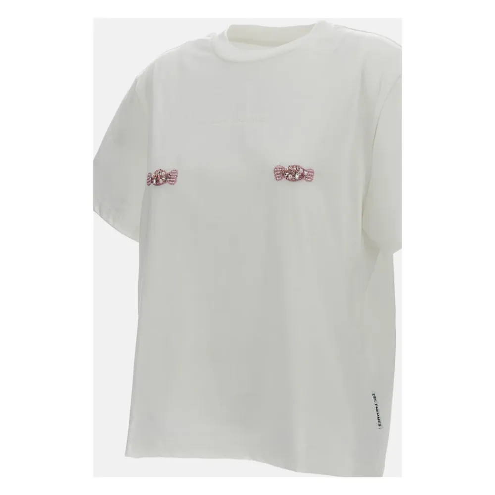 DES PHEMMES Classic Crew Neck T-shirt kombinerer en ren crew-udskæring med krystal- og perleudsmykning samt et logo-mærke ved kraven for et elegant, afslappet look. Nøgleattributter: Hvid | Bomuld | Crew-udskæring | Krystal- og perleudsmykning | Logo-mærke ved kraven | Dimensioner og pasform: Firkantet pasform | Sammensætning og pleje: 100% bomuld | Håndvask