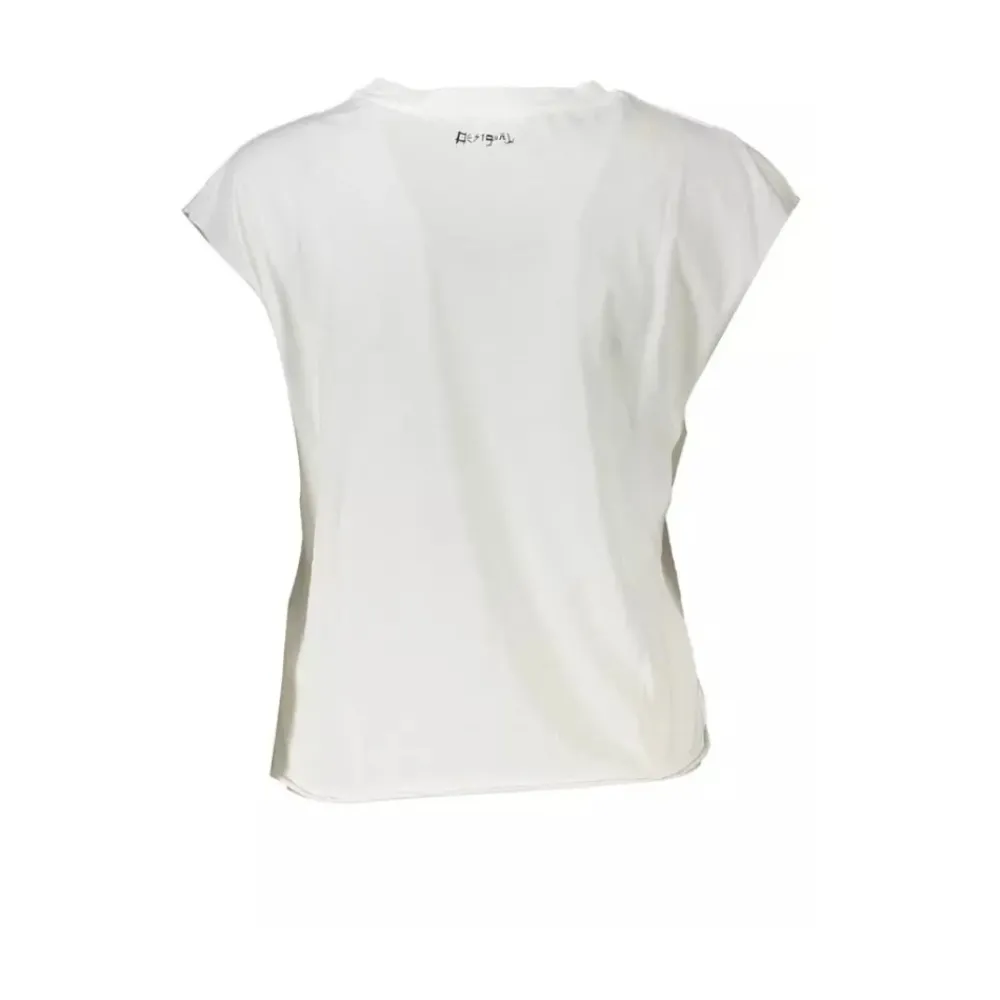 Denne ærmeløse hvide T-shirt fra Desigual er en ægte blikfang og en unik stil. En perfekt blanding af komfort og modeflair, med et legende print og iøjnefaldende kontrastfulde detaljer. Toppen er toppet med mærkets karakteristiske logo og er et alsidigt tilføjelse til enhver garderobe. Materiale: 100% bomuld. Oprindelsesland: PT. Farve: Hvid.