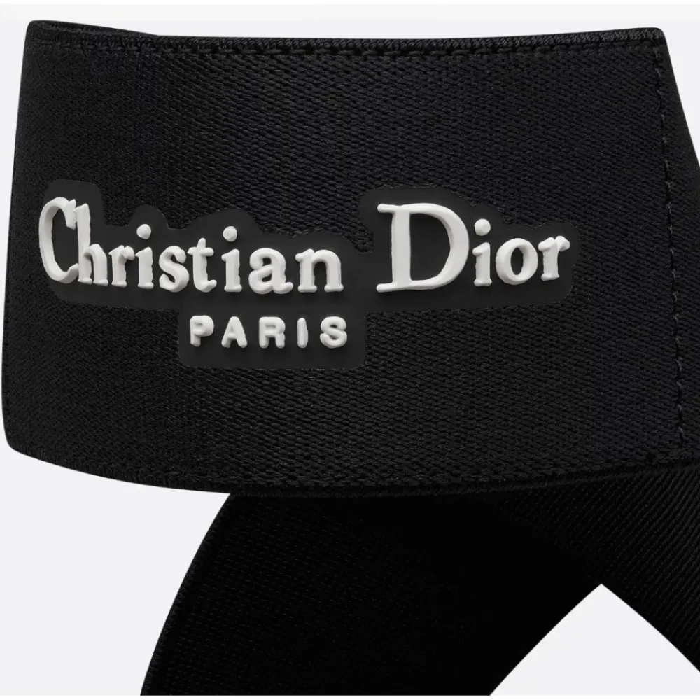 Forkæl dig selv med disse Dior Ballerinaer. Den sorte satinoverdel har tynde elastiske stropper foran og en elegant lavt skåret rund tå. En bred sort elastikstrop krydser over anklen og er prydet med en hvid gummi Christian Dior Paris signatur. Lavet af teknisk stof med silke lambskin foring, disse flade sko har også en rillet gummisål med en stjerne, et symbol på held for Christian Dior. Lavet i Italien. Produkt ID: KCF013SAT.900