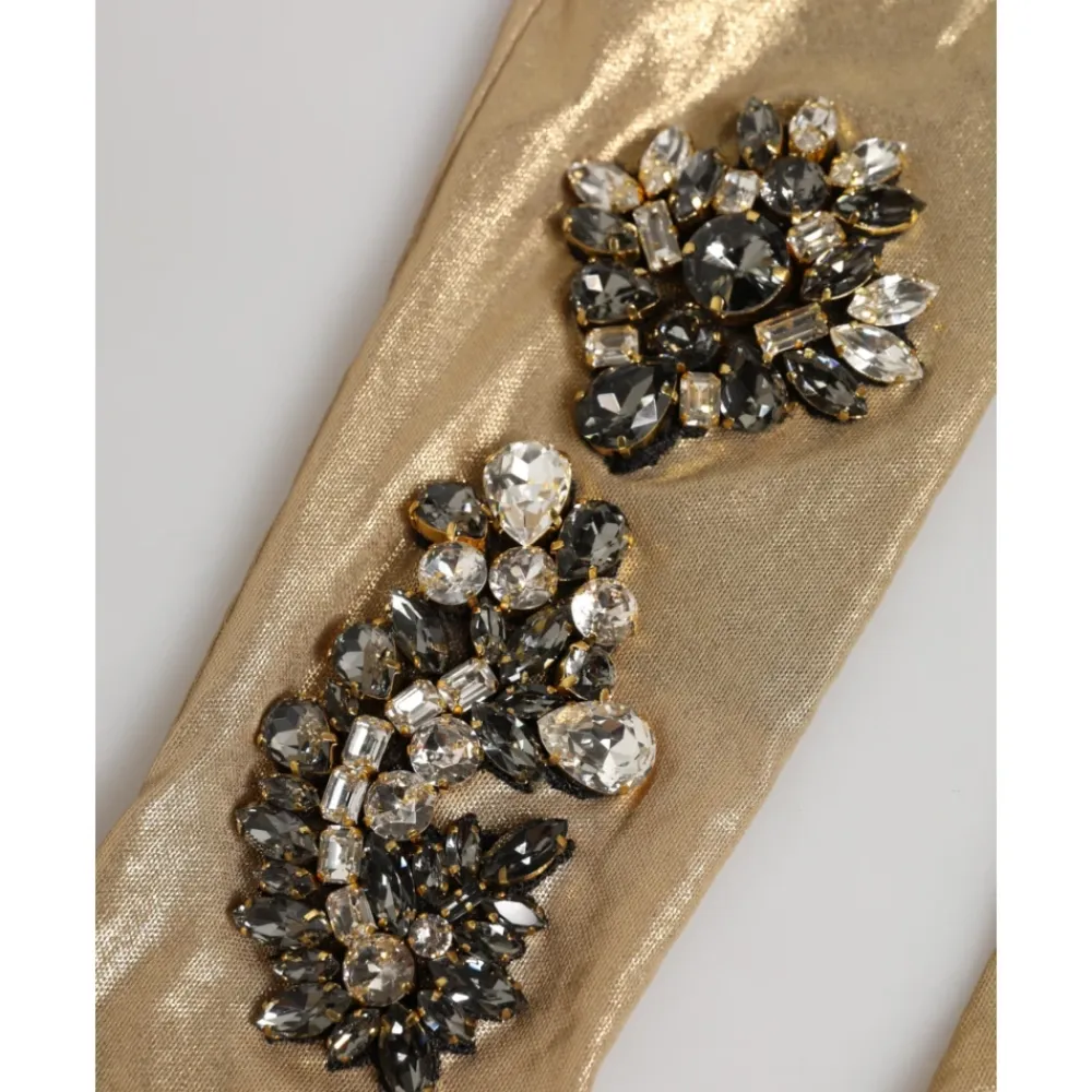 Dolce & Gabbana albuelange vantehandsker kombinerer satinkonstruktion med krystaludsmykning for et sofistikeret aftenaccessory. Designet til formelle looks, de tilbyder en elegant, iøjnefaldende finish til raffinerede outfits. Nøgleattributter: Beige | Satin | Albuelængde | Vantestil | Krystaludsmykning | Logo detalje | Dimensioner & pasform: Albuelængde | Sammensætning & pleje: 2% Elastan, 98% Polyamid | Indvendigt: 100% Polyamid