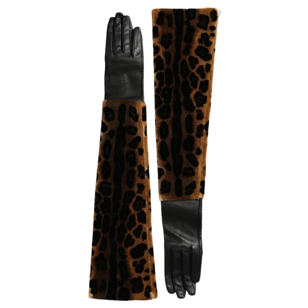 Dolce & Gabbana Handsker*Leopard Print Albuelængde Handsker Multifarvet