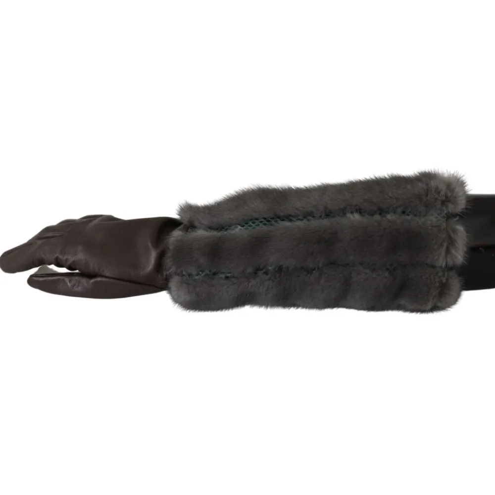 Dolce & Gabbana Handsker*Midt Arm Længde Læder Pels Handsker Brun