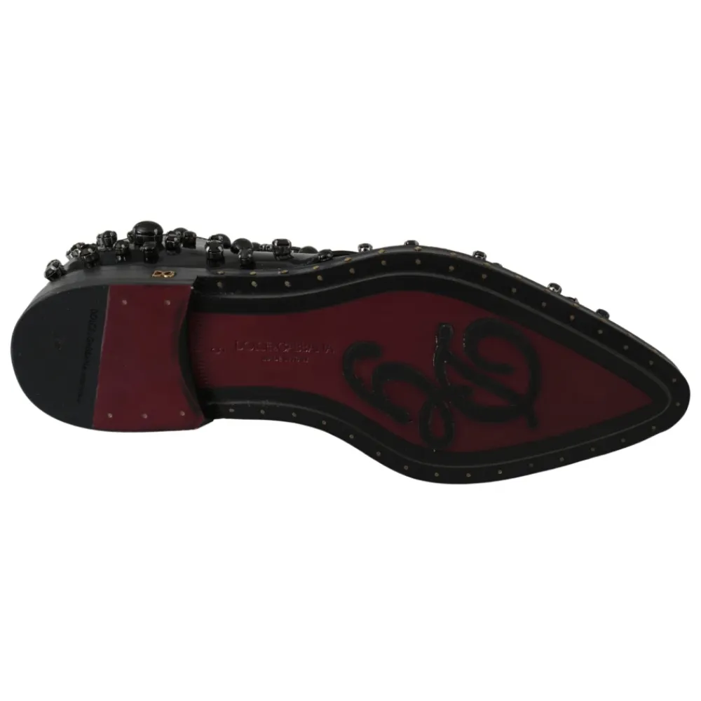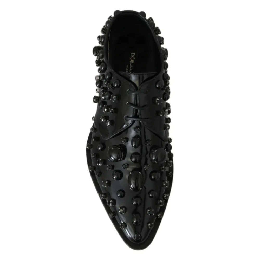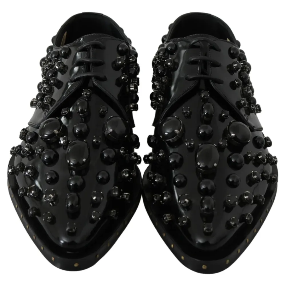 Dolce & Gabbana sko kombinerer poleret læder med sorte krystaludsmykninger for en raffineret, markant sko, der passer til formelle lejligheder og aftenbrug. Nøgleattributter: Sort | Læder | Snørelukning | Sorte krystaludsmykninger | Lædersål | Logodetaljer | Fremstillet i Italien | Sammensætning og pleje: Læder | Sorte krystaller | Lædersål | Pletrens med en blød, fugtig klud. Brug en specialiseret læderrens og balsam. Må ikke maskinvaskes; undgå langvarig udsættelse for vand. Opbevares med sko træer eller i original æske.
