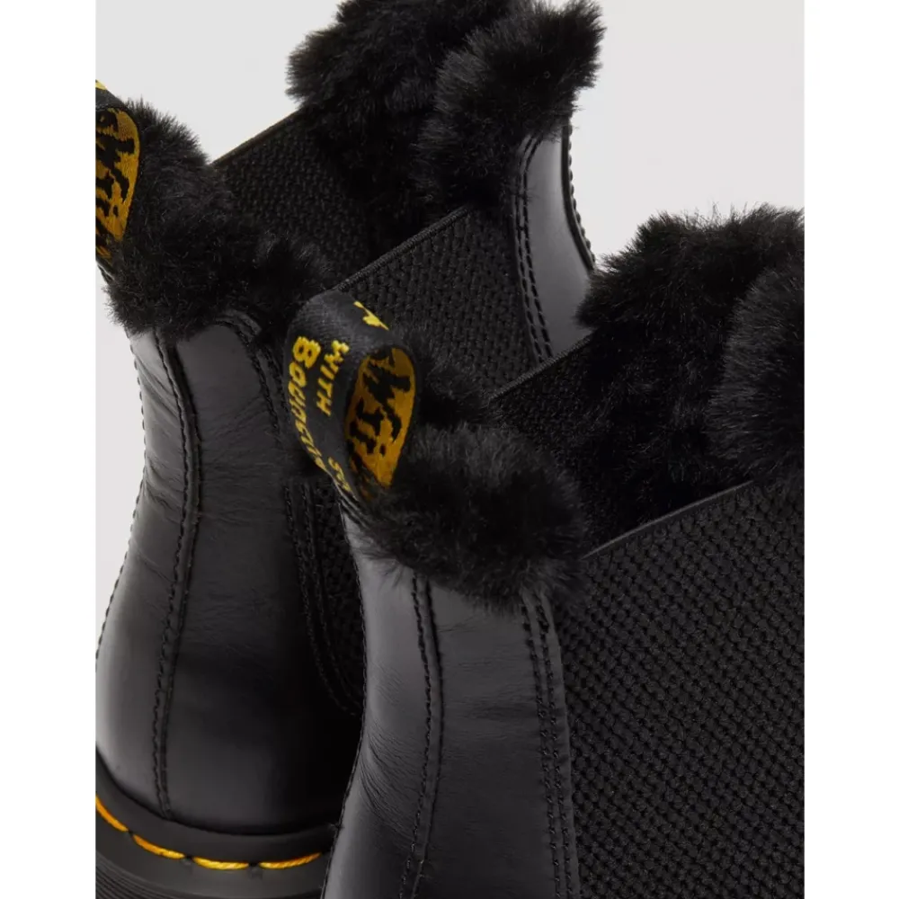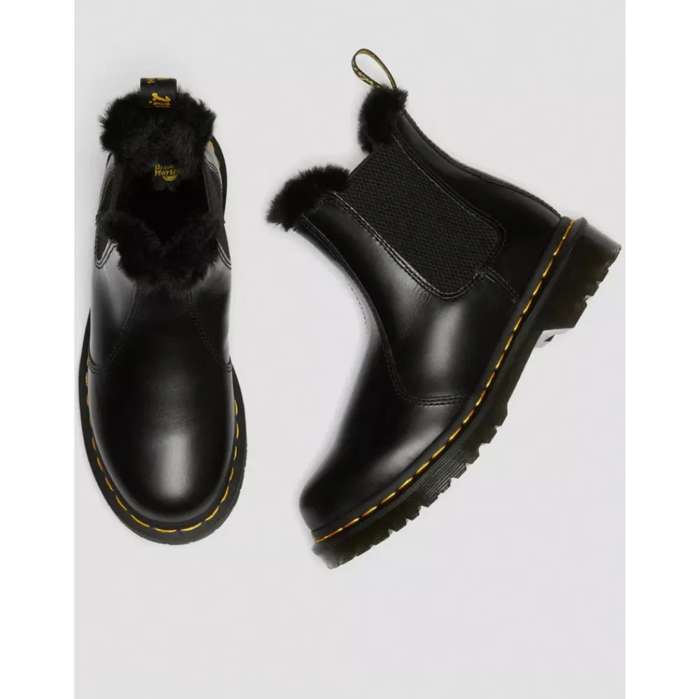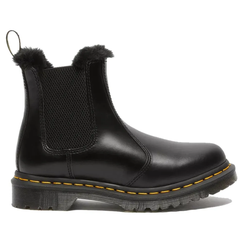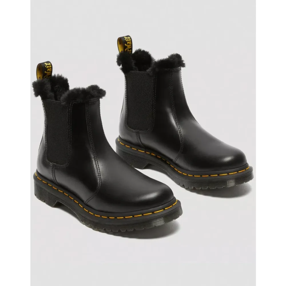 Dr. Martens 2976 Leonore er en robust Chelsea-støvle, der er bygget til koldt vejr. Den kombinerer Atlas-læder med et faux-fur-for for varme og en slidstærk Goodyear-welted konstruktion. Nøgleattributter: Mørkegrå | Atlas | Atlas-læder | Isoleret faux-fur (WarmWair) for for varme | Slidstærk Goodyear-welted konstruktion | Robust commando BEN-sål | Elastiske sidepaneler for nem på- og aftagning | Hælstrop | Slip-on Chelsea-design | Chelsea-støvlesilhuet | Gule welt-syninger | Vokset Atlas-læder med subtil pull-up og satin-glans | Dimensioner og pasform: Normal i størrelsen | Standard læst – egnet til gennemsnitlige til brede bredder | Sammensætning og pleje: Overdel: 70% Læder, 30% Elastan | Indvendigt: 90% Faux fur, 10% Tekstil | Sål: 100% PVC | Aftørres med en fugtig klud. Påfør Dr. Martens Wonder Balsam på læderet og polér med en skobørste for at bevare finishen.