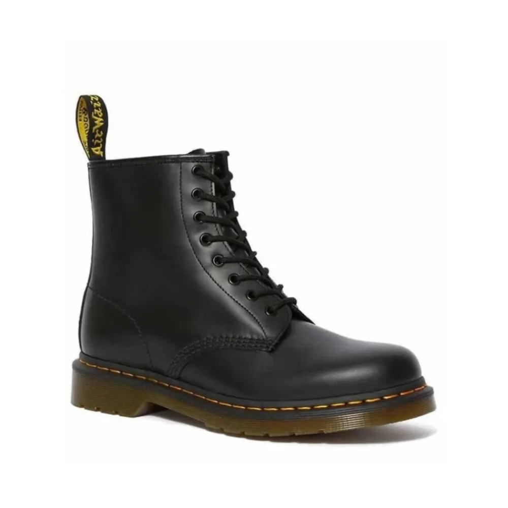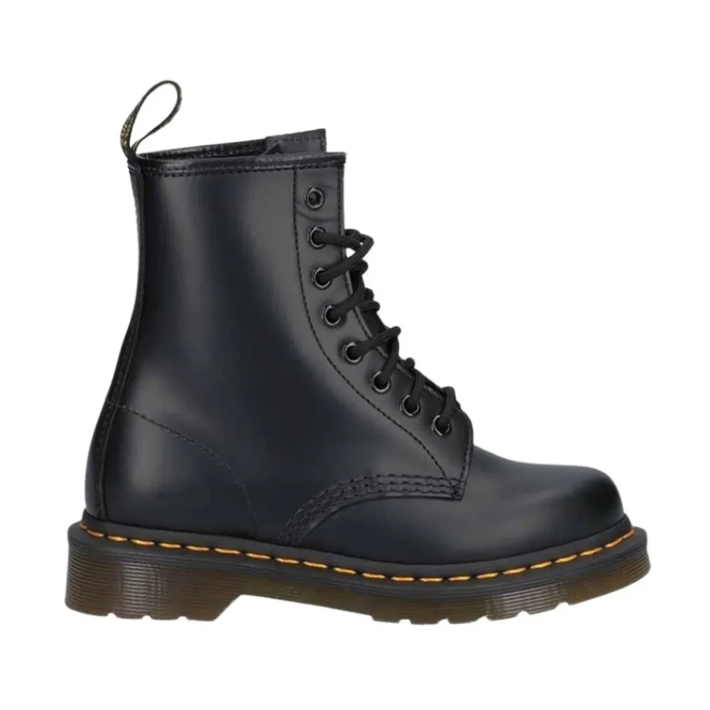 Disse sorte 1460 Smooth Ankle Boots byder på et tidløst look med deres klassiske design og holdbare konstruktion, perfekt til hverdagsbrug. Produkt detaljer: Sort | Læder | Snørebånd | 8 øjenhuller | Rund tå | Sort og gul hælløkke | Gul søm | Dimensioner og pasform: Regular pasform | Sammensætning og pleje: 100% Læder | 75% Tekstil | 25% Læder | 100% PVC