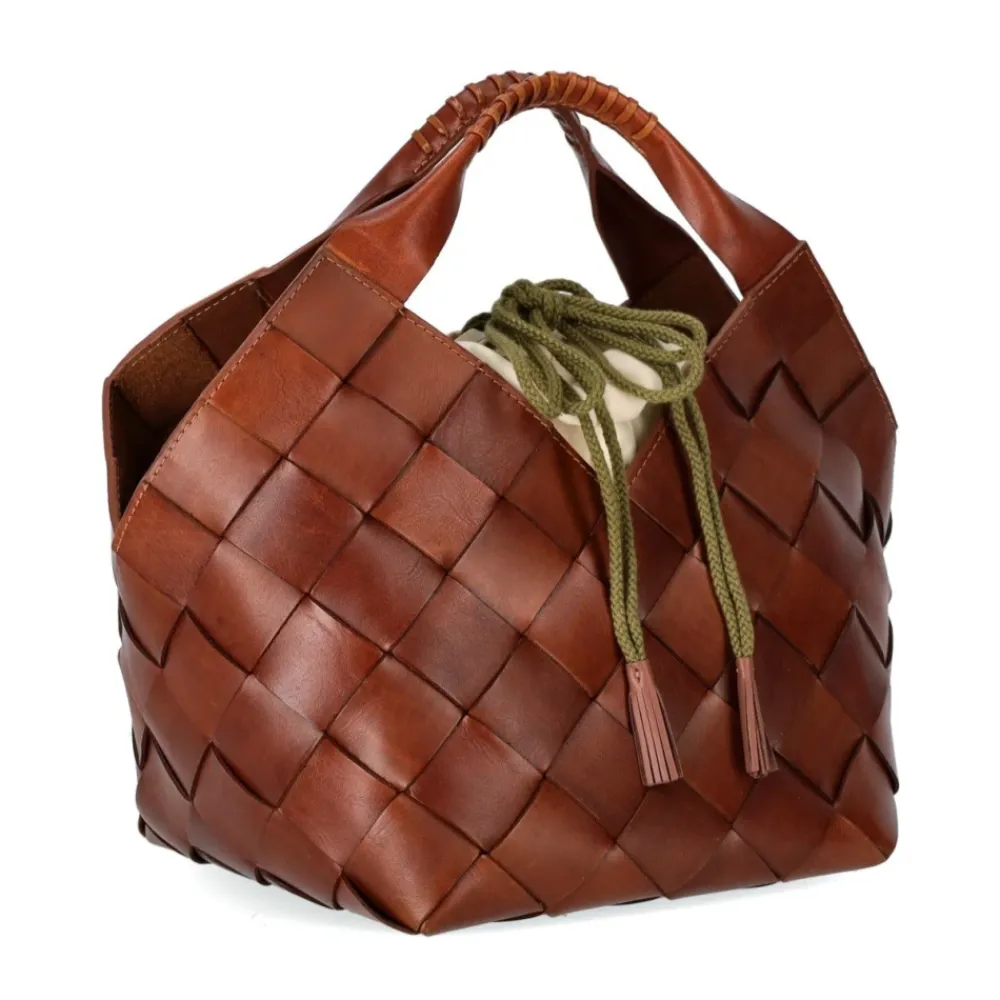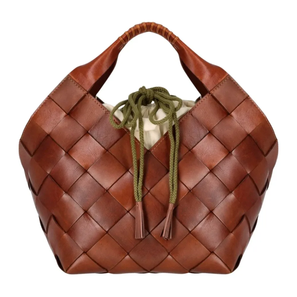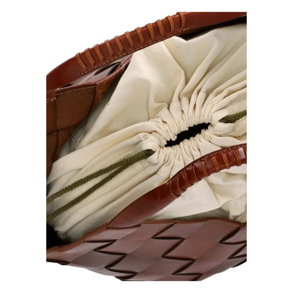 Dragon Diffusion Botteghe Håndtaske kombinerer håndvævet læderhåndværk med en praktisk bucket silhuet. Designet med dobbelte hanke og en lærredspose med snøre gør den ideel til hverdagsbrug og pendlerture i byen. Vigtigste egenskaber: Brun | Tan | Læder | Dobbelte hanke | Lærredspose inkluderet | Snørelukning med kvaster | Vævet mønster | V-formede udskæringer på siderne, foran og bagpå | Bucket silhuet | Kvastkant på snøren | Mål og pasform: 24 x 28 x 23 cm | Sammensætning og pleje: 100% læder