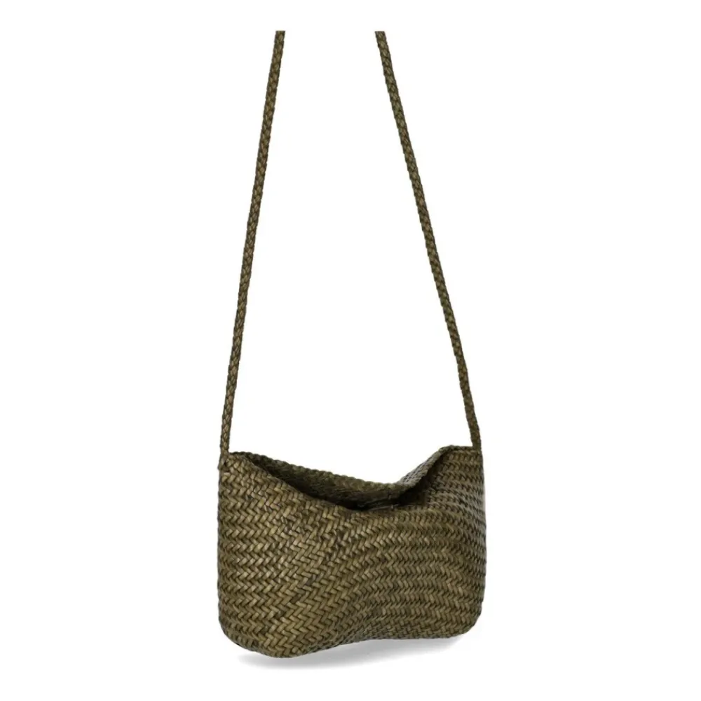 Dragon Diffusion Corsina Crossbody Taske kombinerer håndvævet læderhåndværk med et kompakt, khaki-grønt diagonalt mønster – designet til håndfri hverdagsbrug. Vigtigste egenskaber: Grøn | Khaki grøn | Læder | Ikke-justerbar skulderrem | Magnetisk flaplukning | Diagonalt vævet mønster | Uforet | Flap-over silhuet | Mål og pasform: 21 x 14 x 9 cm | Sammensætning og pleje: 100% læder
