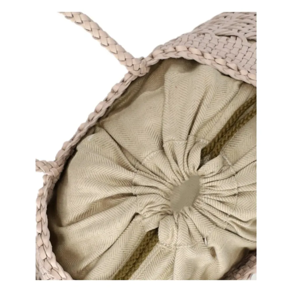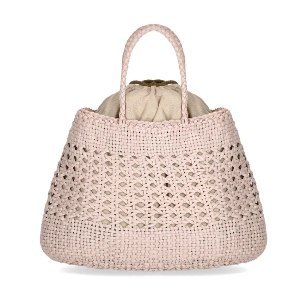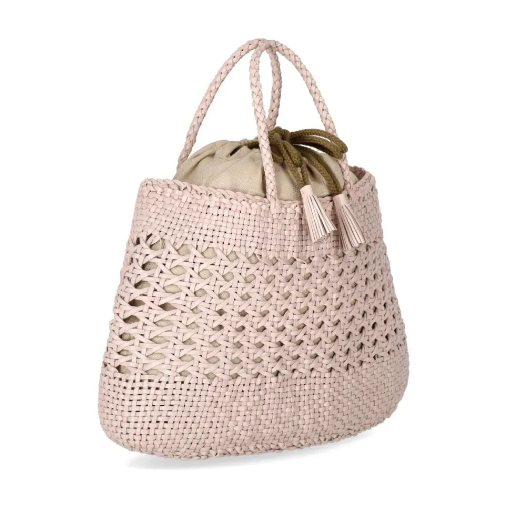 Dragon Diffusion Santa Cano Håndtaske er en vævet lædertaske designet til hverdagsbrug. Dens snørelukning med kvastdetaljer og dobbelte håndtag giver nem adgang og en raffineret silhuet. Vigtige egenskaber: Blush pink | Læder | Dobbelte håndtag | Snørelukning med kvaster | Indvendig lærredspose | Vævet mønster | Bucket silhuet | Kvastdetaljer | Dimensioner & pasform: 30 x 23 x 11 cm | Sammensætning & pleje: 100% læder