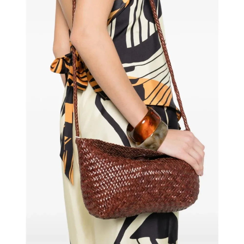 Dragon Diffusion skuldertaske med et brændt brunt vævet design, med et tophåndtag og en indvendig stiklomme til hverdagsorganisering. Nøgleattributter: Brun | Tophåndtag | Indvendig stiklomme | Brændt brunt vævet design | Tekstureret vævning