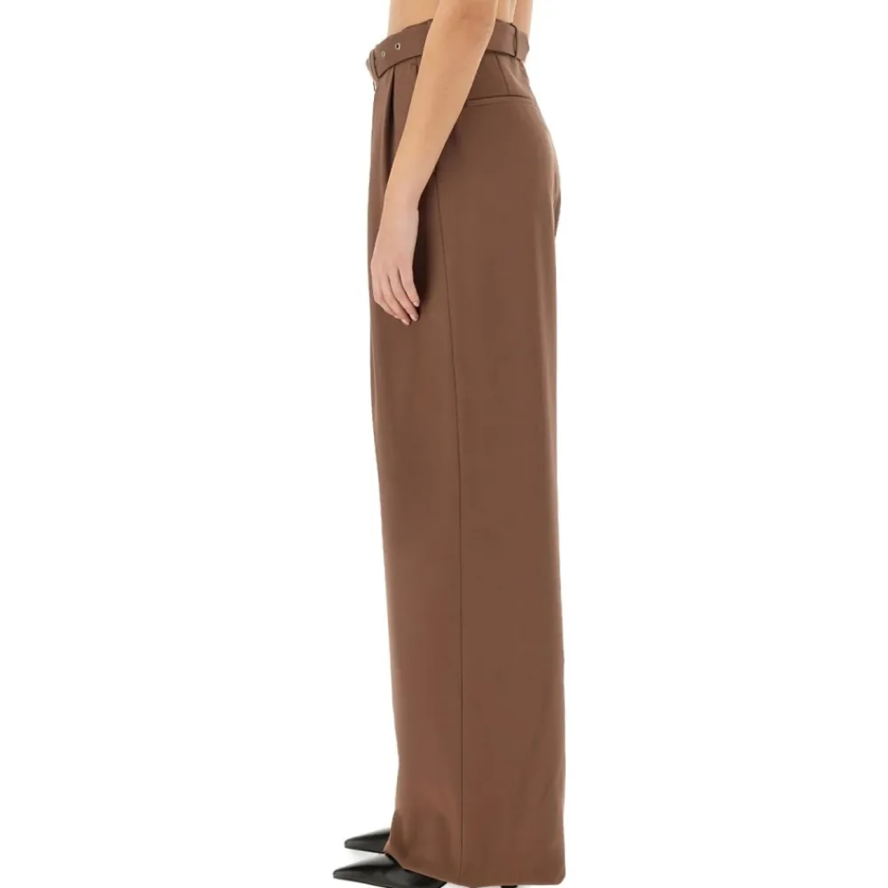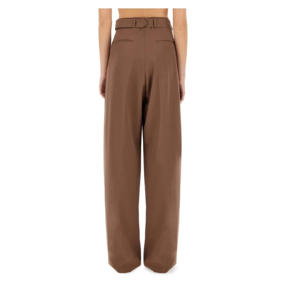 Dries Van Noten Bukser*Højtaljede plisserede bukser med brede ben Brun