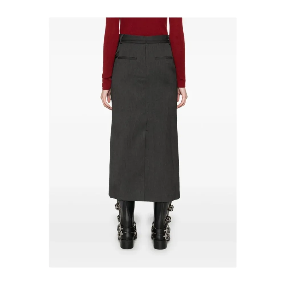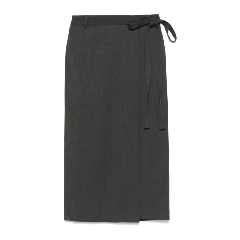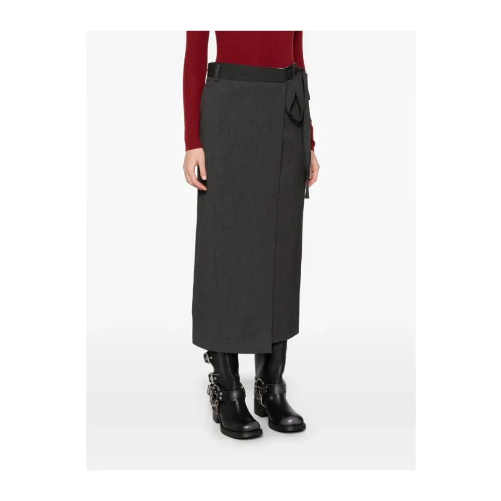 Forkæl din garderobe med denne Dunst koksgrå twill vævet midi nederdel. Med en elegant wrap design med selvbinde og knaplukning, bæltestropper, diagonale lommer, baglommer, bagudskæring og fuld foring. Denne nederdel i mellemlængde er perfekt til den moderne kvinde.
