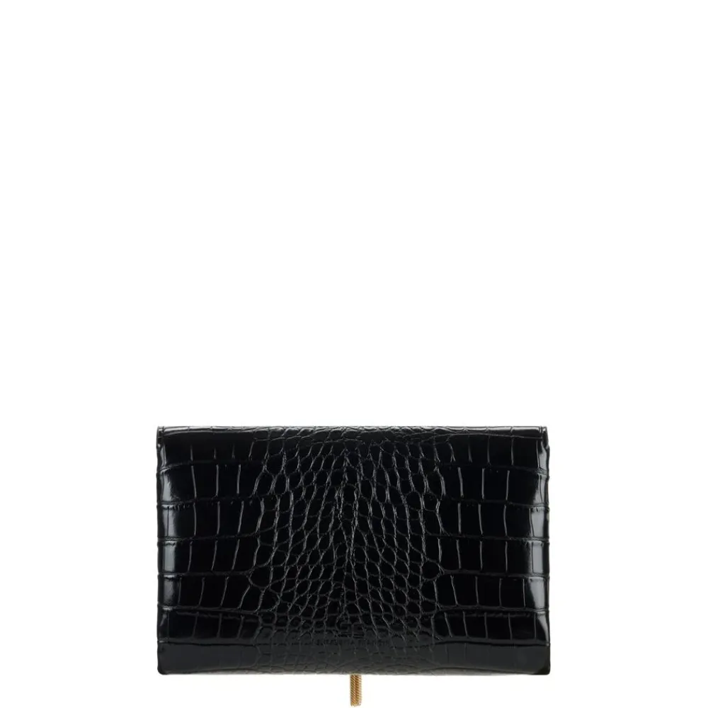 Elisabetta Franchi Skuldertaske med Groumette-kæde kombinerer en kompakt silhuet med krokodilleprint med en guldfarvet groumette-kæderem og logokvast, perfekt til styling fra dag til aften. Vigtigste egenskaber: Sort | Polyurethan | Skulderrem med guldfarvet metal groumette-kæde | Krokodilleprint tekstur | Kompakt minimalistisk form | Guldfarvet metallogo og kvast detalje | Mål & pasform: 14 x 22 x 3,5 cm | Sammensætning & pleje: 60% Polyurethan | 40% Polyester