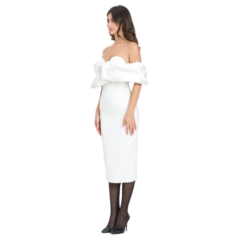Elisabetta Franchi Kjoler*Ivory Off-Shoulder Midi Kjole Hvid
