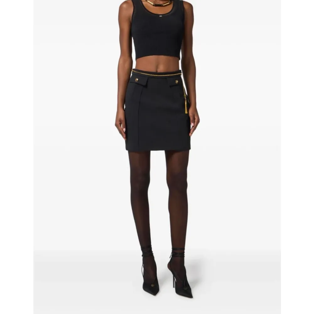 Elisabetta Franchi Nederdele*Nederdel i dobbelt lag crepe stof med juvelkæde Sort
