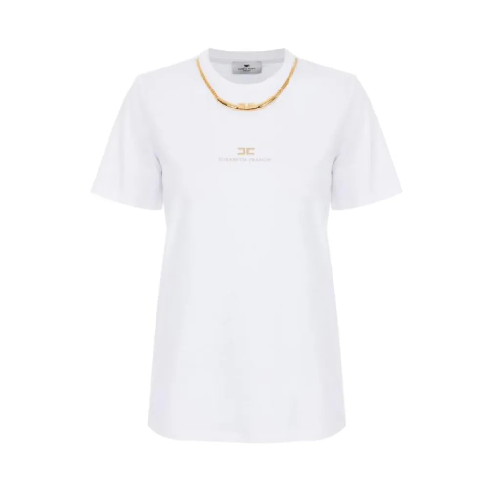 Elisabetta Franchi T-Shirts*Bomuldsjersey T-shirt med halskæde Hvid
