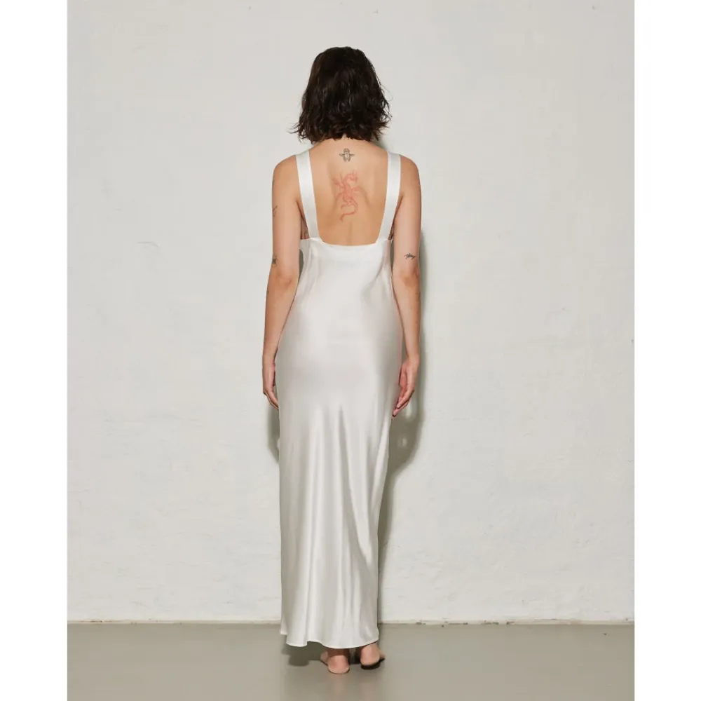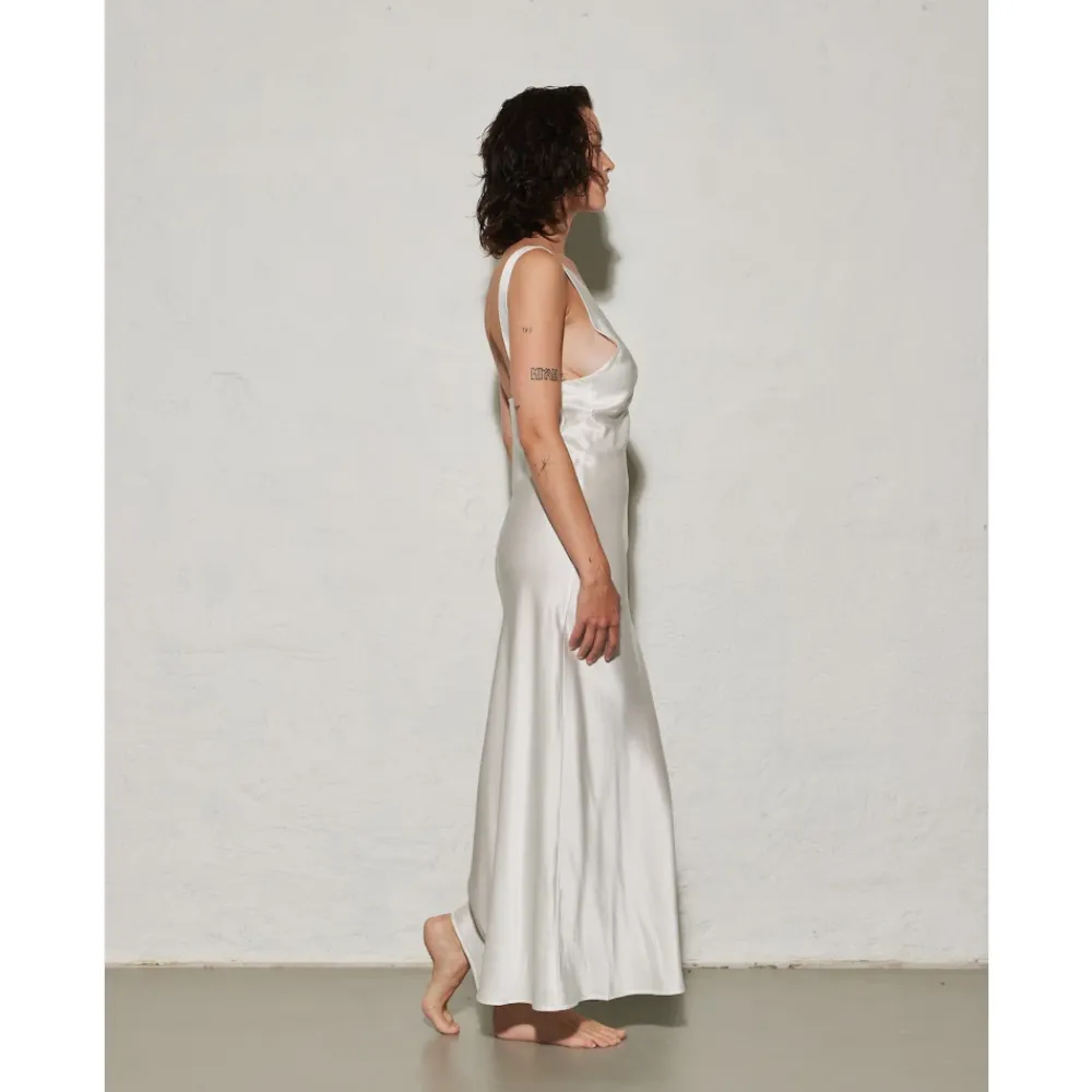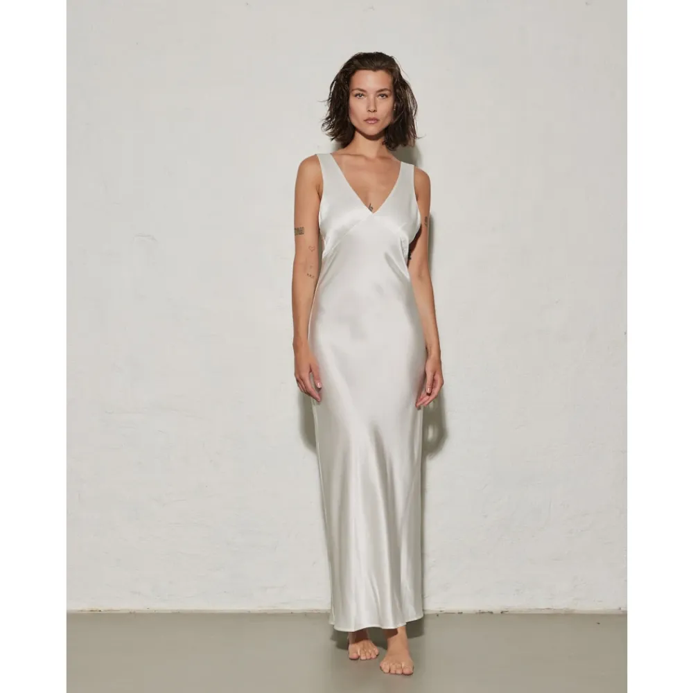Træd ind i elegance med Monte-kjolen fra ENVELOPE 1976. Denne midi-længde kjole har to brede stropper, en front v-udskæring og en åben ryg for et strejf af sofistikation. Lavet af 100% silke, tilgængelig i oliven og fløde. Hæv din sommergarderobe med den luksuriøse enkelhed i Monte-kjolen.