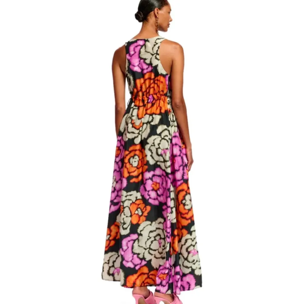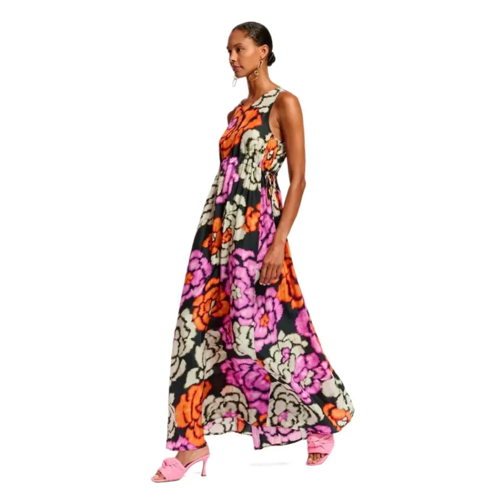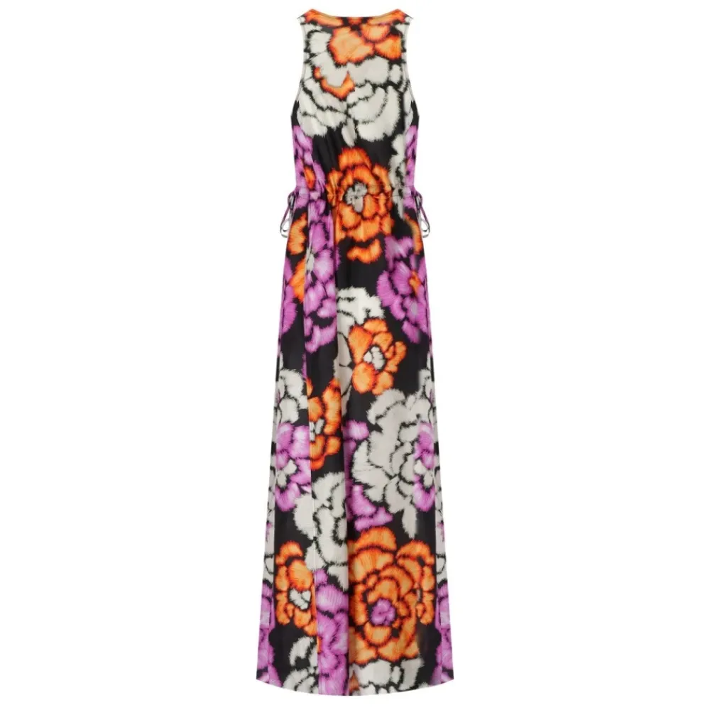 Essentiel Antwerp Kjoler*Sort blomstret lang silkekjole Multifarvet