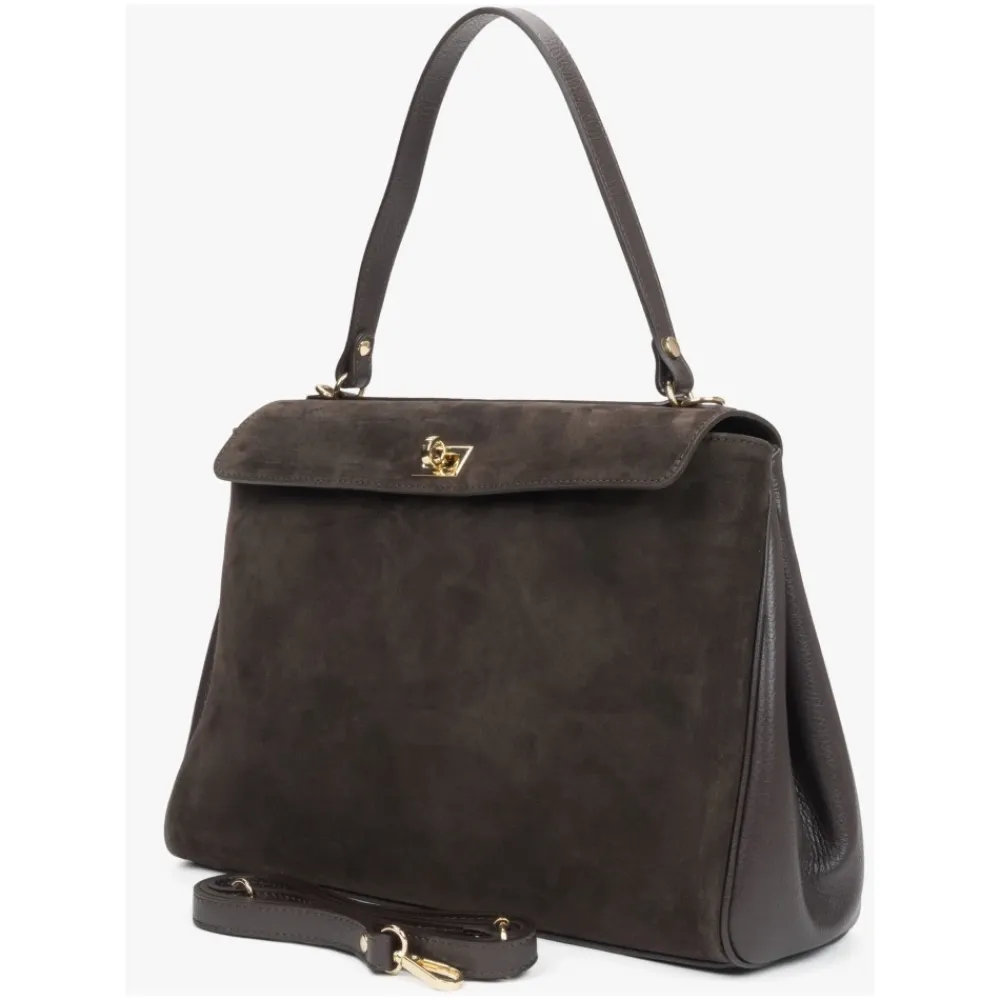 Estro Saddle Satchel Bag kombinerer førsteklasses italiensk velour og læder for en raffineret, organiseret taske, der er velegnet til både hverdagsbrug og særlige lejligheder. Nøgleattributter: Mørkebrun | Velour og læder | Holdbar konstruktion | Justerbar, aftagelig rem | To rum | To lommer | Spænde lukning | Inkluderer anti-dust pose | Saddle satchel silhuet | Guldfarvet hardware | Velour og læder finish | Dimensioner og pasform: Længde: 47 cm | Højde: 24 cm | Bredde: 10 cm | Håndholdt rem maks. længde: 46 cm | Skulderrem maks. længde: 100 cm | Håndholdt og skulderbæremuligheder | Sammensætning og pleje: Ægte italiensk velour | Ægte italiensk læder | Tekstilforing