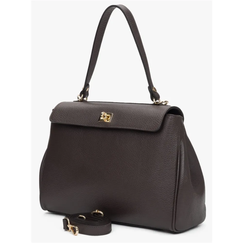 Opdag tidløs elegance med denne sadelbrune håndtaske fra Estro. Ekspertfremstillet af 100% ægte italiensk læder i premiumkvalitet, tilbyder denne taske luksuriøs kvalitet og vedvarende stil. Den holdbare tekstilforing sikrer langvarig slidstyrke. Organiser dine essentielle ting nemt med de to rum og to lommer. Nyd alsidige bæremuligheder med de ekstra stropper inkluderet, der måler 46 cm og 100 cm. Spændelukningen sikrer dine ejendele, mens det gyldne hardware tilføjer et strejf af sofistikation. En ekstra justerbar rem medfølger for ekstra bekvemmelighed. Mål: Længde 32 cm | Bredde 11 cm | Højde 23 cm.