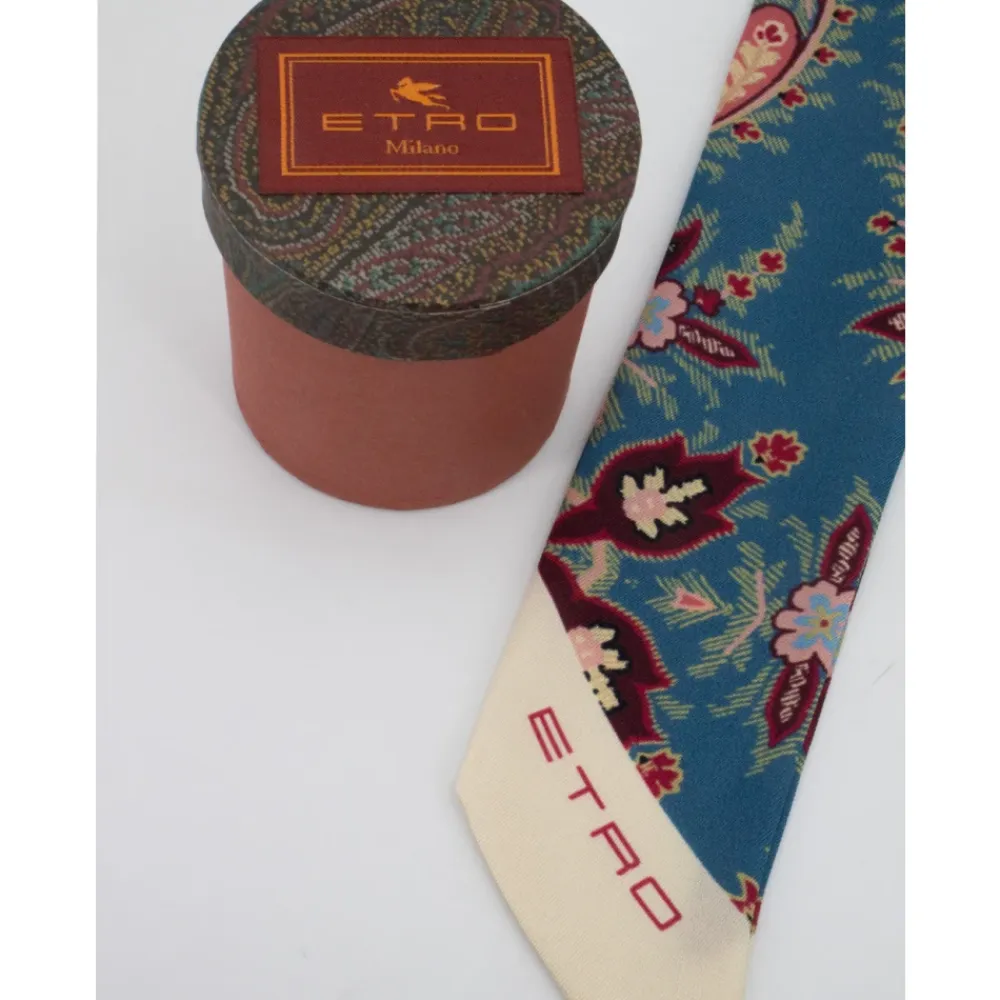 Forstærk dit outfit med dette luksuriøse Etro Paisleyna silketørklæde. Lavet af 100% ren silke twill, det har kontrasterende ensfarvede kanter og det ikoniske ETRO-logo. Målinger: 5×150 cm.