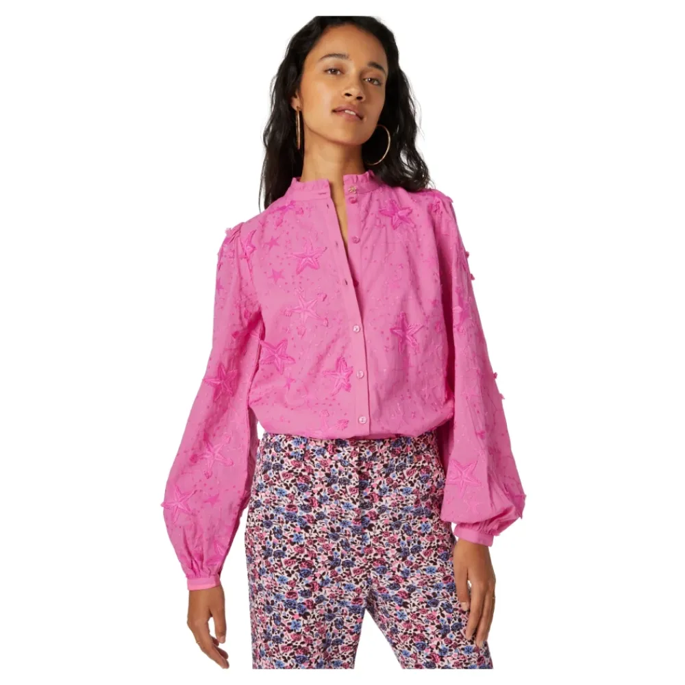 Fabienne Chapot Jonny Bluse er en let bomuldsbluse, der skiller sig ud med sit broderede stjerneprint over det hele og lange ballonærmer, perfekt til både afslappede og smarte hverdagsoutfits. Vigtige egenskaber: Pink | Bomuld | Blød fornemmelse | Komfortabel | Knaplukning | Flad opretstående krave | Broderet stjerneprint over det hele | Lange ballonærmer | Sammensætning & pleje: 100% Bomuld | Tjek altid vaskeanvisningen for specifikke vaskeanvisninger.