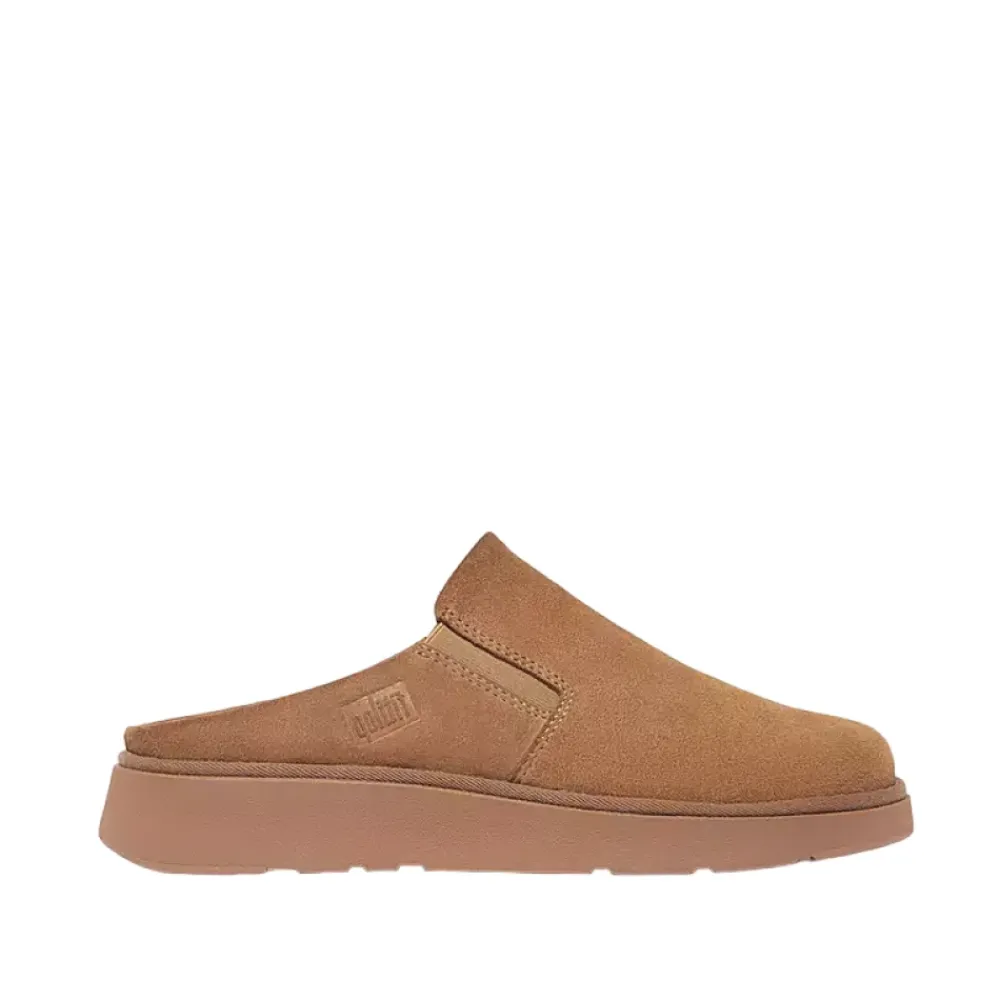 Vigtigste egenskaber: Brun | Desert tan | Mule silhuet (uden bagkappe) | Slip-on åbning | Flad sål