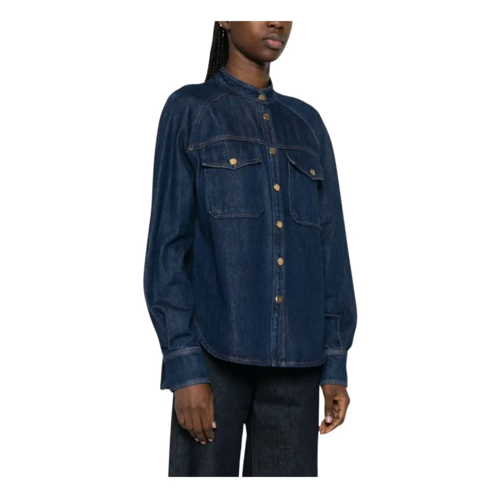 Forte Forte My Shirt er en denimskjorte, der udmærker sig ved guldfarvede knapper og praktiske brystlommer. Den er designet til alsidig lagdeling og hverdagsbrug. Vigtige egenskaber: Blå | Knaplukning | Brystlommer | Buet kant | Lange ærmer | Guldfarvet hardware