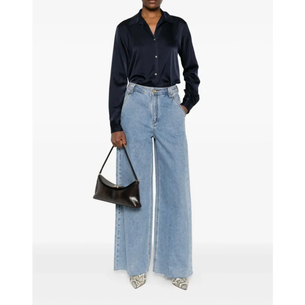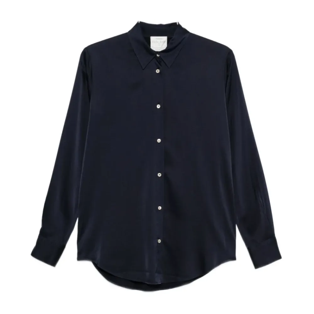 Forte Forte Bluser & Skjorter*Navy Blue Silkeblandet Skjorte med Krave Blå
