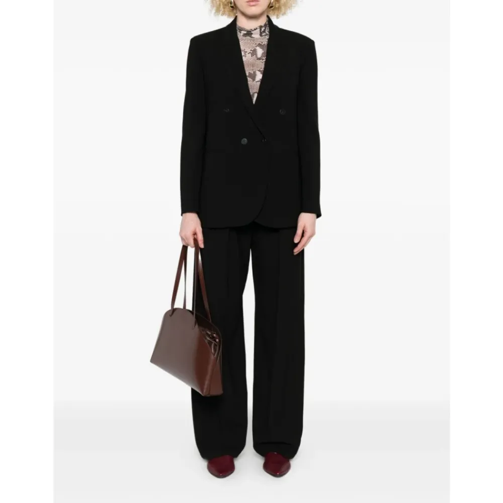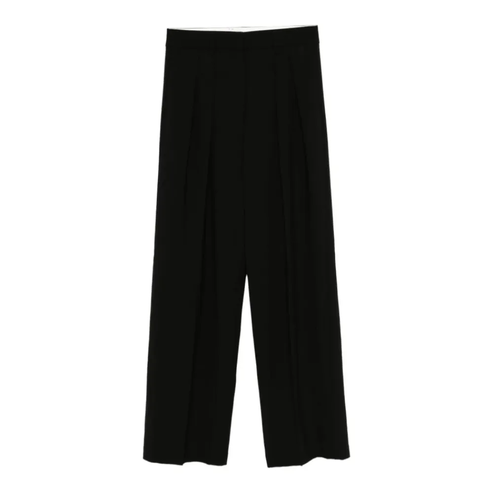 Forøg din stil med disse Forte Forte brede bukser i sort. Lavet af en luksuriøs uld-viskose blanding, de tilbyder en sofistikeret pasform perfekt til stilfulde udflugter eller professionelle omgivelser.