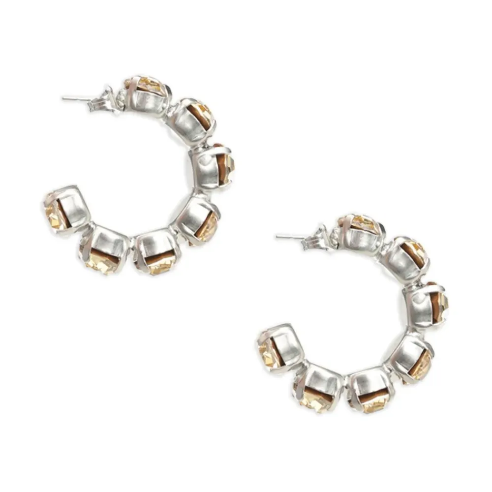 Forøg din stil med disse Forte Forte øreringe med sølvfarvet metal hoops, post-back lukning og flere sten. Sælges som et par.