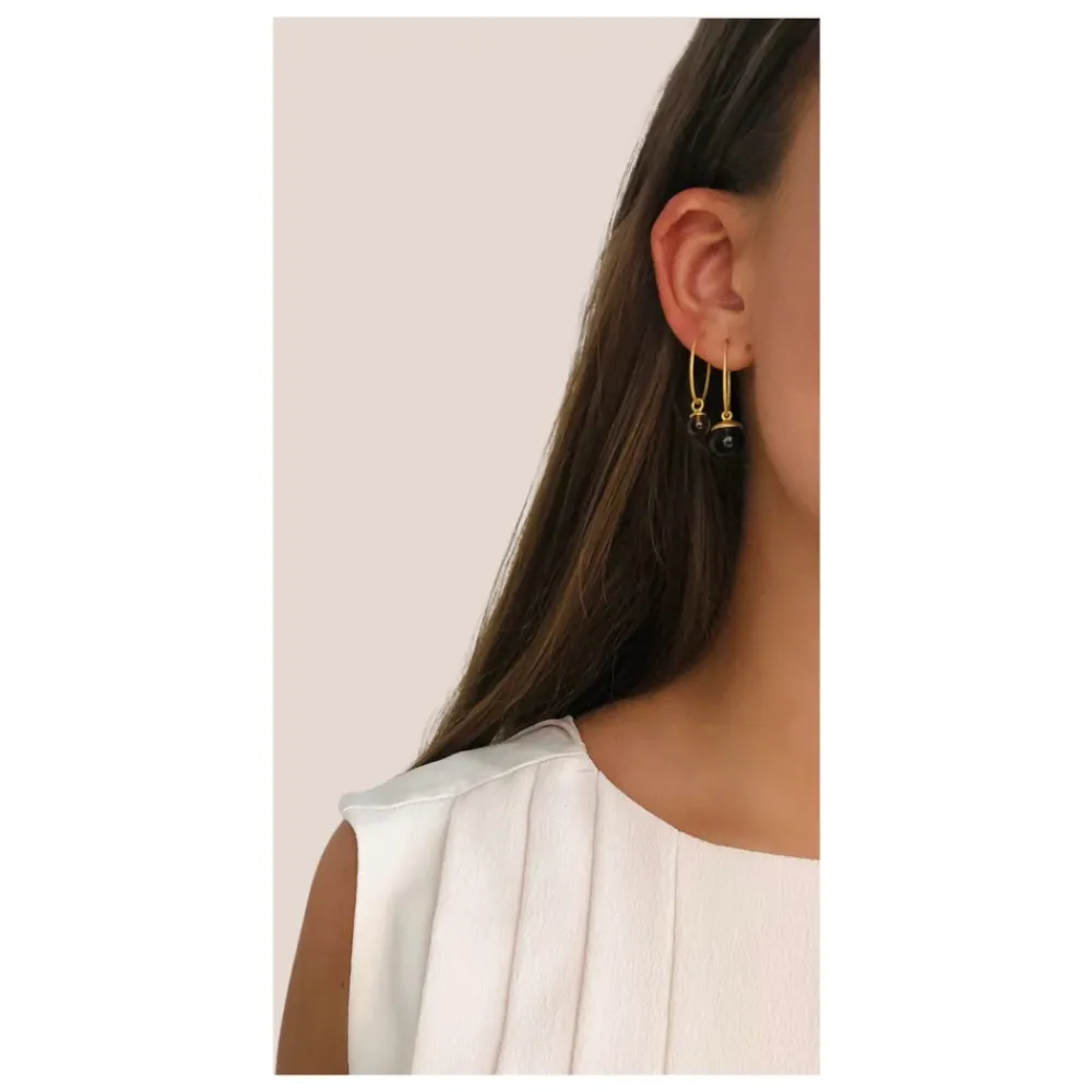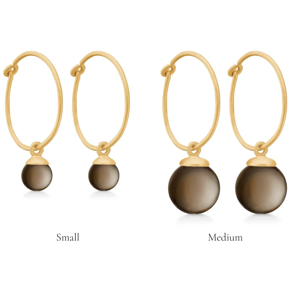 Forkæl dig selv med disse Frk. Lisberg Columbine creol øreringe i 14 karat forgyldt sterlingsølv med en smuk røgkvarts sten. Vælg mellem to størrelser: Lille (ca. 6 mm i diameter) og Mellem (ca. 9 mm i diameter). Prisen er for et par.