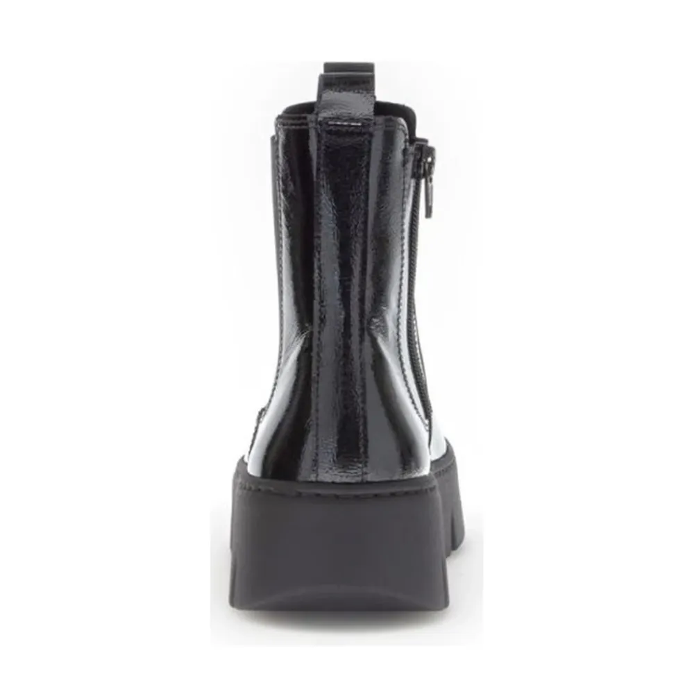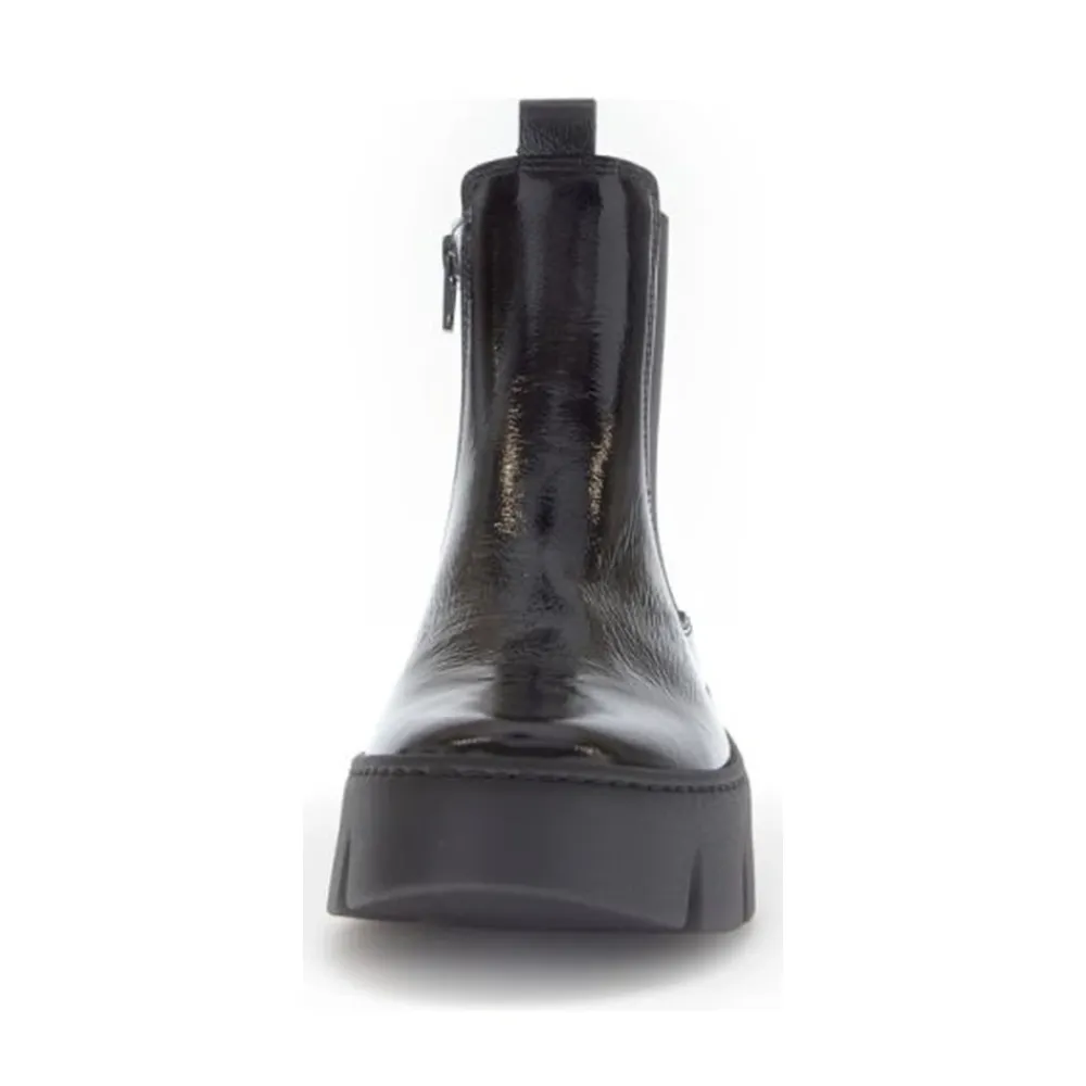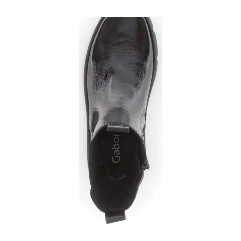 Gabor Chelsea Boot – en ankelstøvle i laklæder designet til hverdagsbrug i byen. Den kombinerer en klassisk Chelsea-silhuet med en udtagelig, polstret indersål for komfortabel brug hele dagen. Vigtige egenskaber: Sort | Laklæder | Polstret, udtagelig indersål | Udtagelig indersål | Chelsea-silhuet | Rund snude | Blok hæl | Dimensioner og pasform: Skaftehøjde: 15 cm | Hælhøjde: 5 cm | Vægt: 0,83 kg | Normal bredde (F) | Sammensætning og pleje: Overdel: Laklæder | Foring: Mikrofiber | Udtagelig indersål