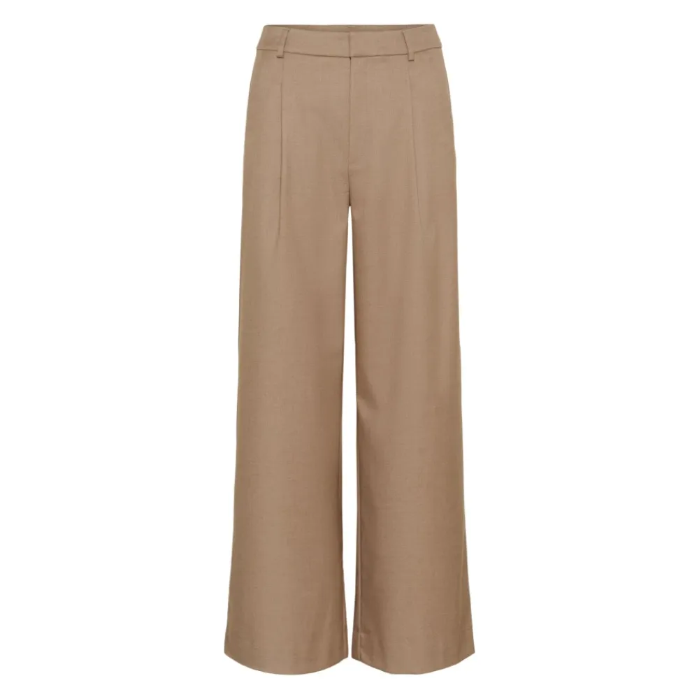 Gestuz Wide Trousers tilbyder en afslappet, bredbenet silhuet designet til alsidig hverdags- og kontorbrug. Nøgleattributter: Brun | Burnt Marple Sugar Melange | Dimensioner & pasform: Bredbenet pasform