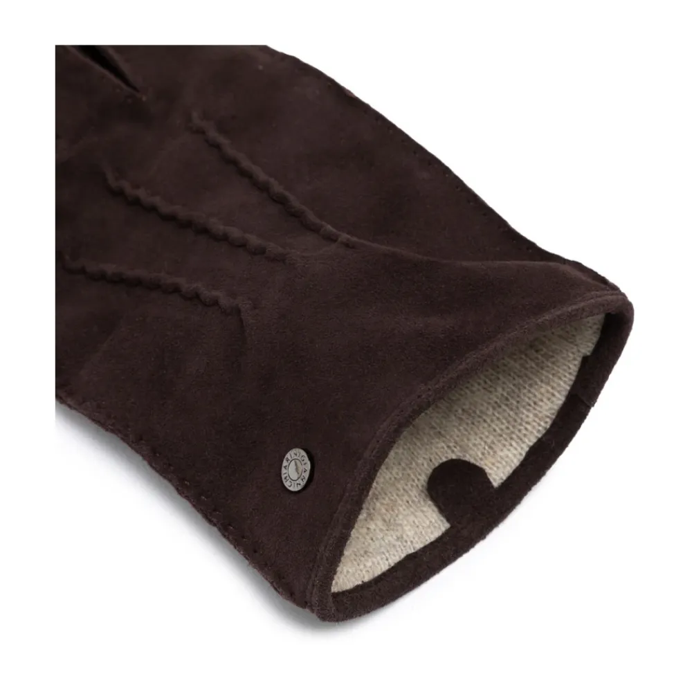 Gianni Chiarini Ruskindshandsker kombinerer et blødt ruskindsoverflade med et varmt uldfor. De har raffinerede topstikninger og en logo-nitte for et elegant, tidløst look. Vigtigste egenskaber: Brun | Testa moro | Ruskind | Varmt uldfor | Håndledsrem med logoknap | Topstikninger | Logo-nittedetaljer | Sammensætning & pleje: Læder | Uld | Professionel læderrensning.
