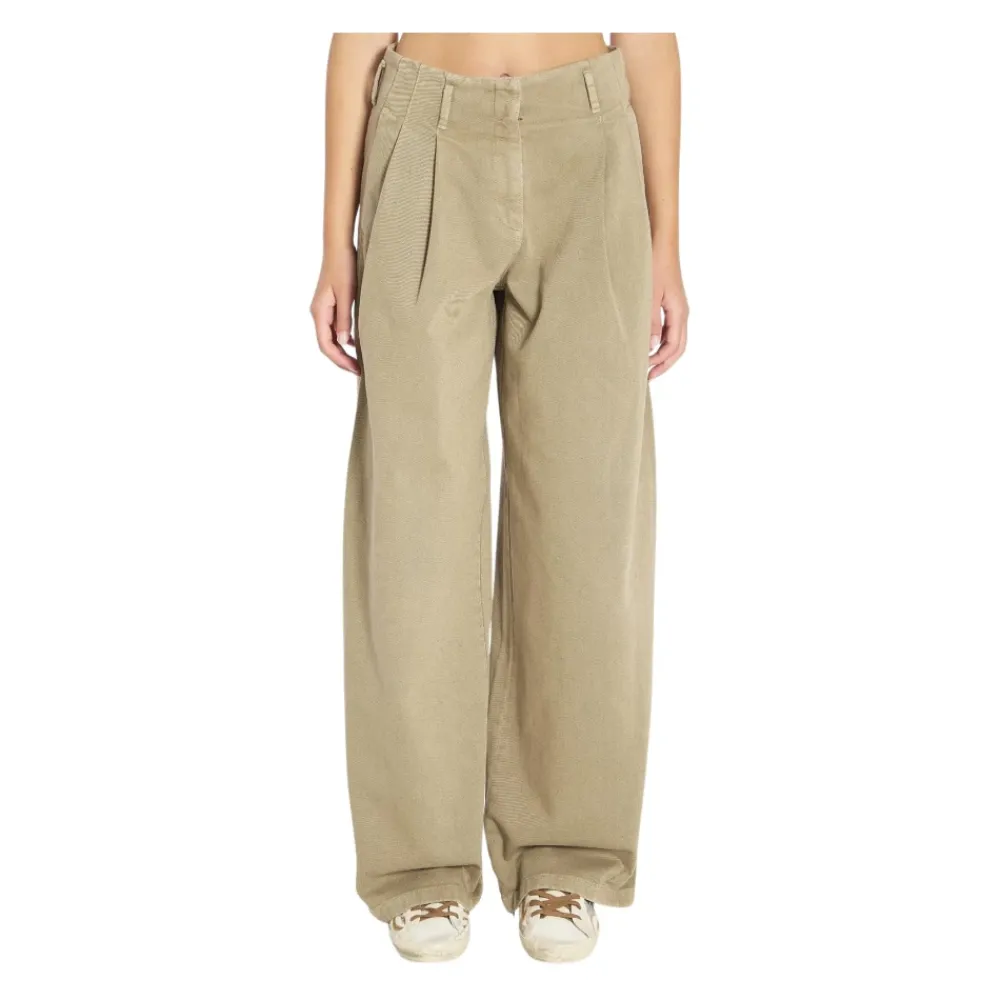 Golden Goose Bukser*Wide Leg Plisserede Fløjlsbukser Grøn