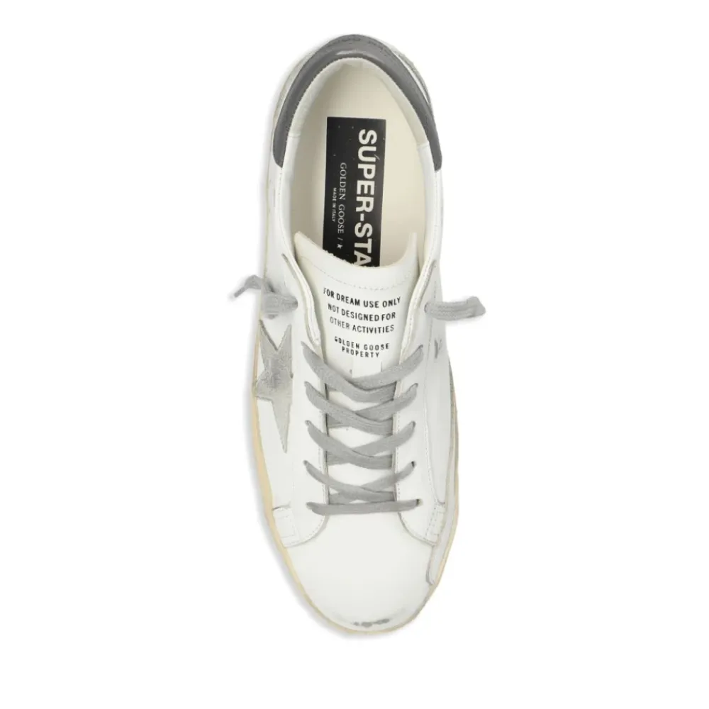 Forny dit fodtøj med Super-Star Sneakers, der har et stilfuldt vintage-design, som tilføjer et unikt touch til ethvert outfit. Produkt detaljer: Hvid | 100% Kalveskind | Distressed vintage effekt | Grå stjernelap | Grå hælkappe | Logomærke | Snørebånd | Dimensioner og pasform: Regular pasform | Sammensætning og pleje: 100% Kalveskind | Tørres af med en fugtig klud Kunder har rapporteret, at dette mærke har en tendens til at være stort i størrelsen. Vi anbefaler, at du vælger en størrelse mindre end normalt.
