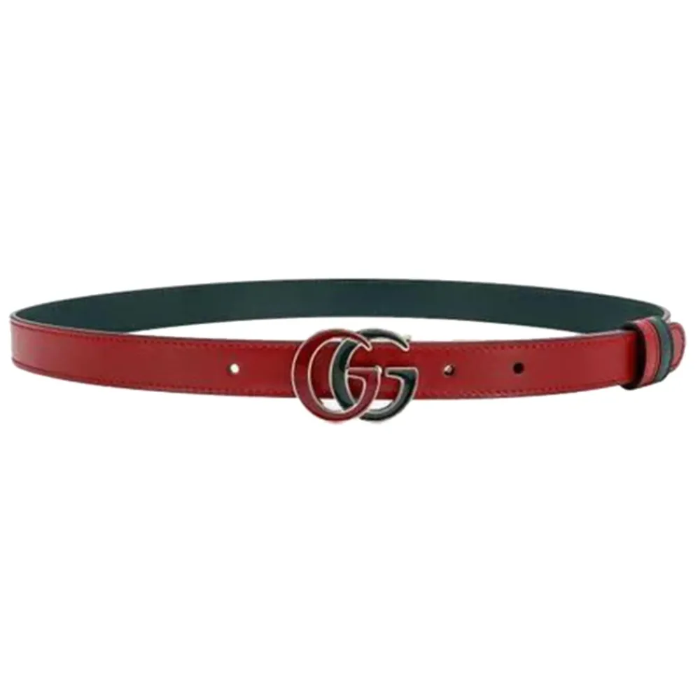 Gucci GG Marmont Reversible Læderbælte kombinerer en vendbar rem i kalveskind med det karakteristiske GG-spænde for en alsidig stil, der løfter enhver garderobe. Vigtige egenskaber: Rød | Kalveskind | Slidstærkt læder | Justerbar lukning | Vendbart design | Bicolor GG-logospænde | Metalspænde | 2 cm bæltebredde | Dimensioner & pasform: Bæltehøjde: 2 cm | Spændestørrelse: 4,5 x 3,5 cm | Sammensætning & pleje: 100% kalveskind