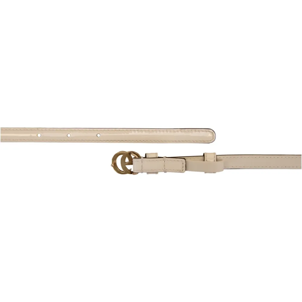 Gucci GG Marmont Thin Belt kombinerer en slank finish i laklæder med en guldfarvet ‘GG’-logoplade, hvilket giver et raffineret tilbehør til både skræddersyede og afslappede looks. Nøgleattributter: Hvid | Avorio | Læder | Justerbart spænde | Ydre lag i laklæder | Glat læderinteriør | Guldfarvet ‘GG’-logoplade | Mål og pasform: Højde (cm): 1,5 | Længde (cm): 110,5(100), 115,5(105), 120,5(110), 125,5(115), 130,5(120) | Sammensætning og pleje: Læder (ydre: laklæder; indre: glat læder) | Metalbeslag (guldfarvet) | Beskyt mod direkte lys, varme og regn. Hvis våd, tør straks med en blød klud. Opbevar i den medfølgende pose eller æske. Rengør med en blød, tør klud.