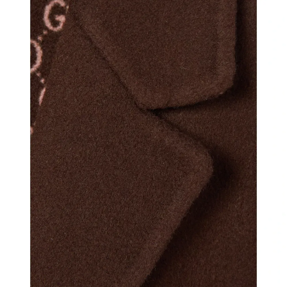 Gucci Reversible Silk Wool Coat tilbyder to forskellige looks i ét stykke, hvor du kan skifte mellem ensfarvet brun uld og silke og en brun/lyserød GG-motiv bagside. Den er designet til alsidighed og kombinerer skræddersyede detaljer med en vendbar dobbeltvævet konstruktion. Vigtigste egenskaber: Brun | Lyserød | Uld og silke | Vendbar | Uforet | Knaplukning | To sidelommer | Hakkrager | GG-motiv på bagsiden | Dobbeltvævet konstruktion | Sammensætning og pleje: 99% uld | 1% silke | Renseri