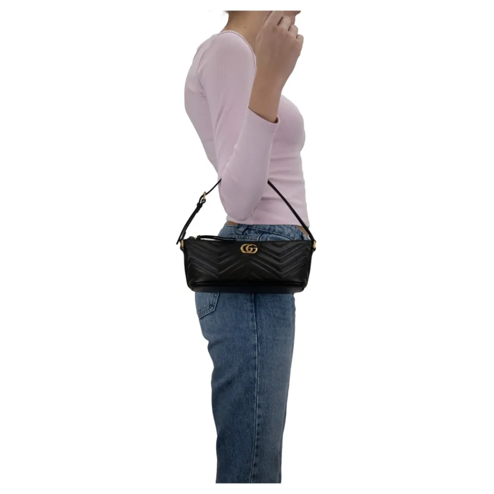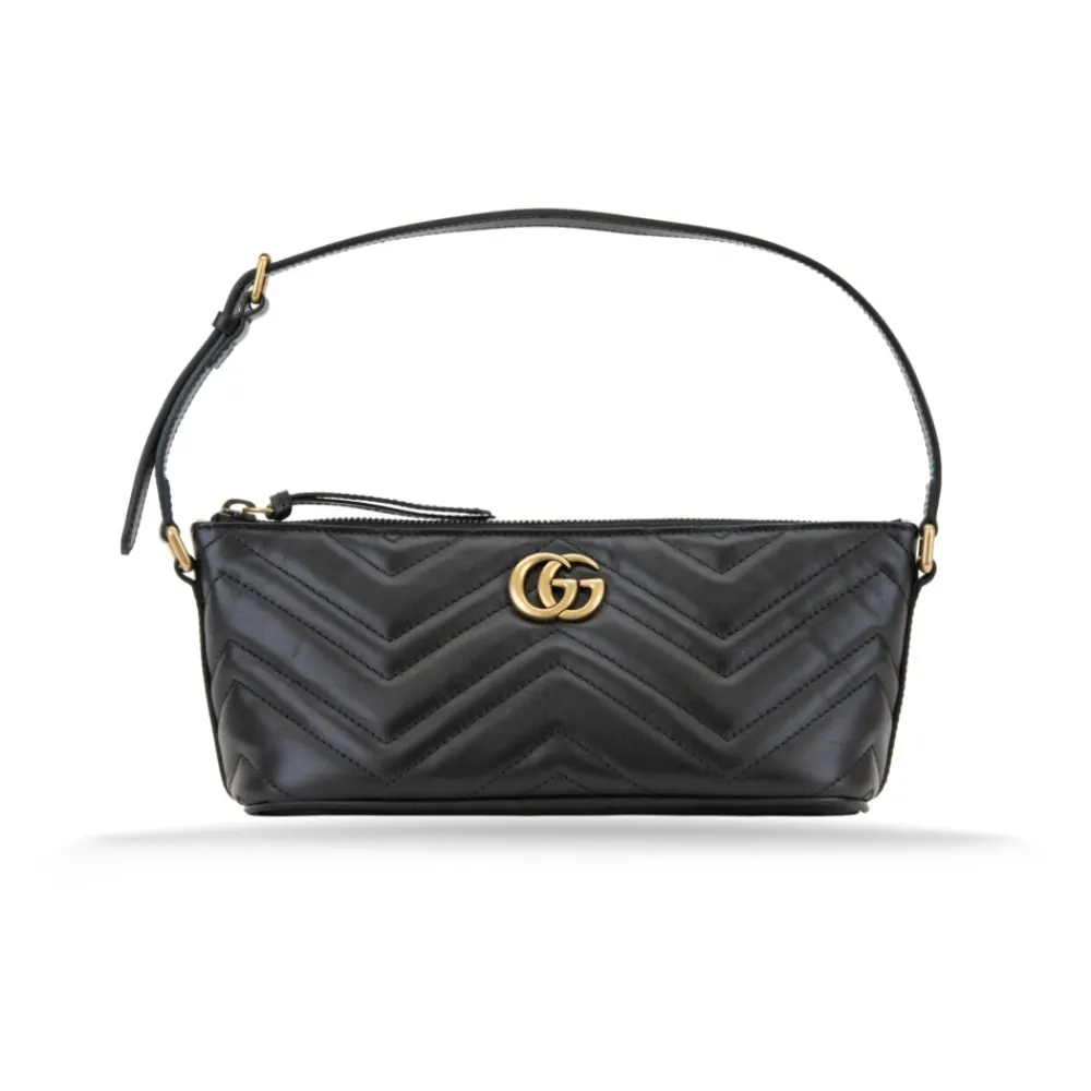 Oplev elegancen i denne Gucci håndtaske, fremstillet af glat læder med en ruskindforet inderside, perfekt til et sofistikeret look. Produkt detaljer: Sort | Læder | Justerbart læderhåndtag | Læderkuvertlomme | `GG` logo hardware i guld | Dimensioner og pasform: B26cm x H10.5cm x D10cm |