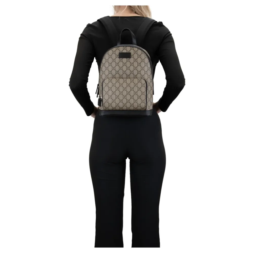 Forhøj din stil med denne Gucci dame-rygsæk. Fremstillet med læder udvendigt og stof bagpå for komfort. Det rummelige indre har en sidelomme med lynlås og logoet læderkant. Den forreste lomme er foret med stof og mikrofiber med ruskindseffekt. Prydet med det ikoniske ‘GG’ logo på ydersiden. Justerbare stof skulderstropper og et læderhåndtag for alsidighed. Produceret i Italien. Mål: B23cm x H30cm x D15.5cm.