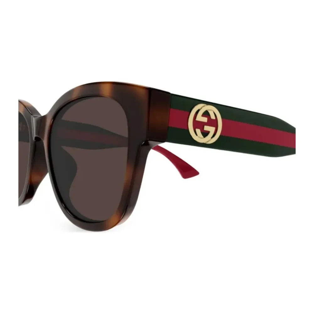 Gucci Butterfly Solbriller kombinerer en flatterende cat-eye silhuet med signaturdetaljer på stængerne, hvilket giver et poleret hverdagsaccessories. De kombinerer stil og solbeskyttelse til daglig brug. Vigtige egenskaber: Multicolor | Brun | Havana | Acetat | UV-beskyttelse (Kategori 3) | Inkluderer originalt etui og pudseklud | Kan tilpasses med styrkeglas | Butterfly / rundet cat-eye form | Medium stang med web-detalje | Guldtonet logo bogstaver på stangen | Dimensioner & pasform: Glasbredde: 56 mm | Bro: 19 mm | Stanglængde: 145 mm | Medium pasform | Sammensætning & pleje: Acetat (stel) | Bio nylon (linse) | Metal (stangdetalje) | Tør linserne med en mikrofiberklud og opbevar dem i det medfølgende etui. Undgå skurende rengøringsmidler og langvarig udsættelse for varme.