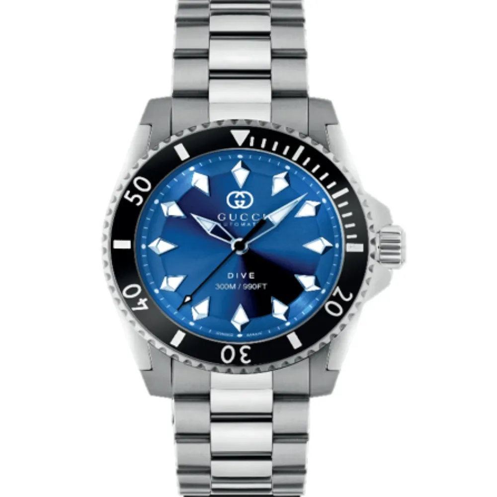 Løft din stil med Gucci Dykkeruret, der har en blå urskive og et robust urkasse i rustfrit stål. Dette ur kombinerer elegance med funktionalitet, hvilket gør det perfekt til både afslappede og formelle lejligheder. Produkt detaljer: Blå | Stål | Grå | Rustfrit stål | 30 ATM vandtæthed | Automatisk urværk | Sort keramisk urkrans | Safirkrystal |