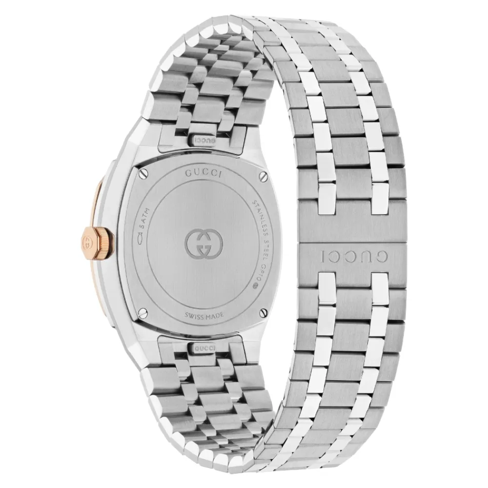 Forkæl dig selv med dette Gucci ur til kvinder. Med safirglas og rustfrit stålrem er dette ur vandtæt op til 5 atm (50 meter/164 fod).