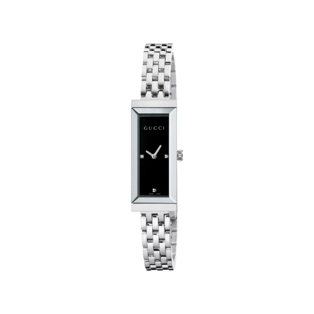 Vær den første til at anmelde “Gucci Ure*YA127504 – G-Frame Stålkasse, sort skive med 3 diamanter, stålarmbånd Grå” Annuller svar