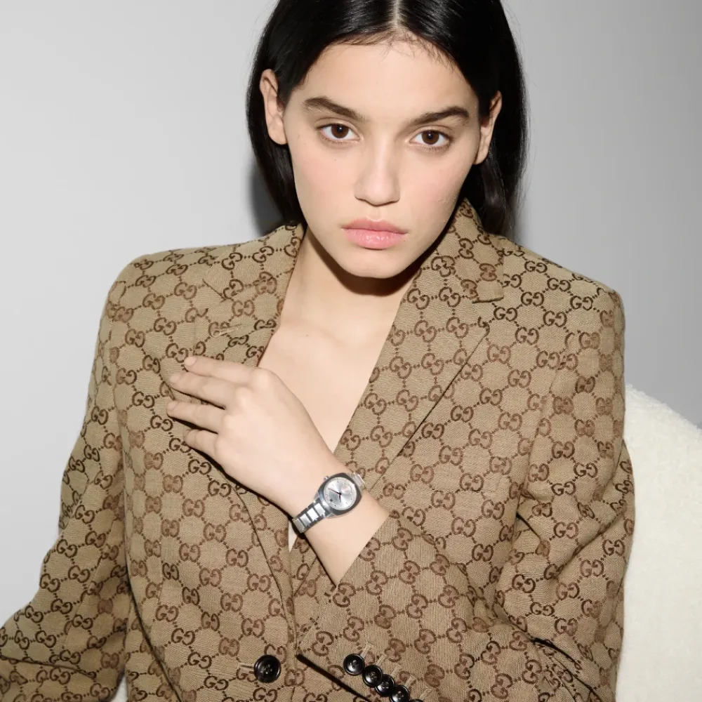 Forhøj din stil med dette Gucci ur til kvinder. Med safirglas og rustfrit stålrem er dette tilbehør både elegant og holdbart. Vandafvisende op til 5 ATM (50 meter/164 fod).