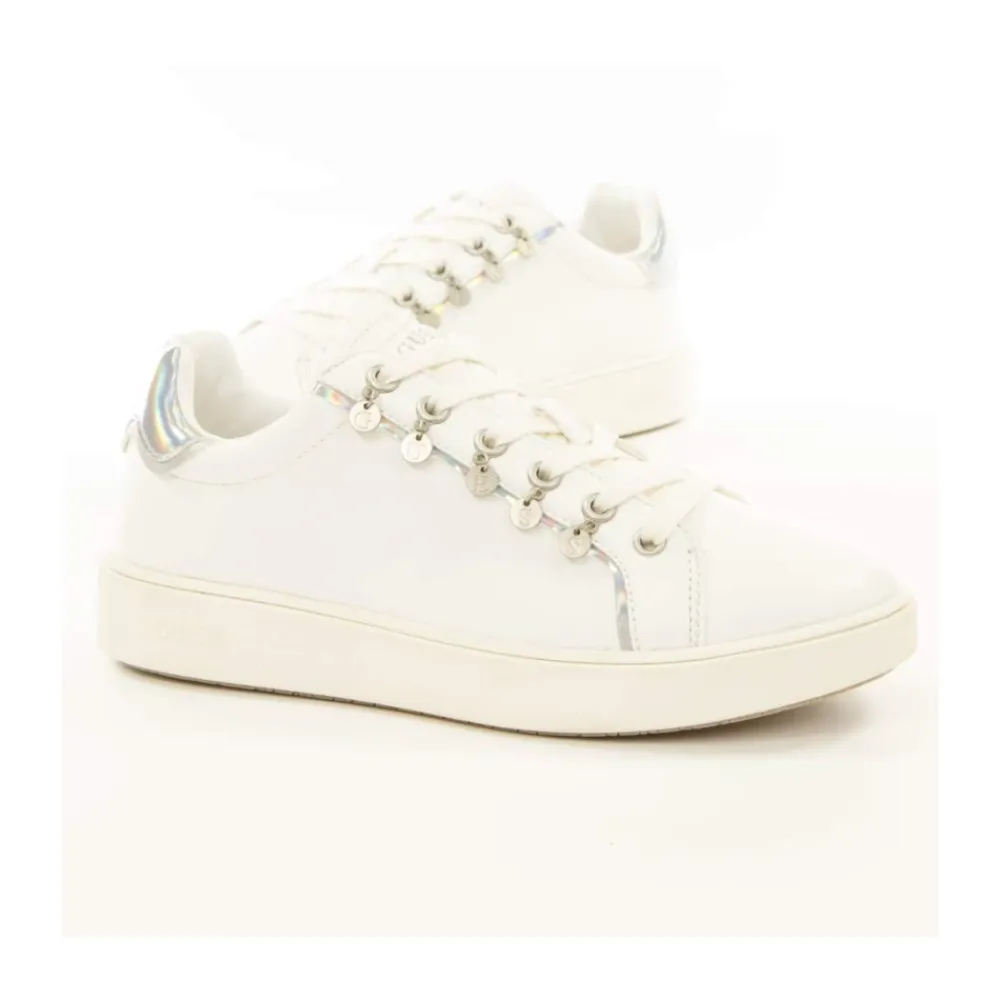 Guess Mely Sneaker er en lav, snørebundet sko designet til hverdagsbrug i byen. Dens rene hvide stil passer nemt til både afslappede og smarte outfits. Vigtige egenskaber: Hvid | Blanc | Snørelukning | Lav silhuet | Flad sål | Dimensioner og pasform: Normal i størrelsen – prenez votre taille habituelle / take your usual size.