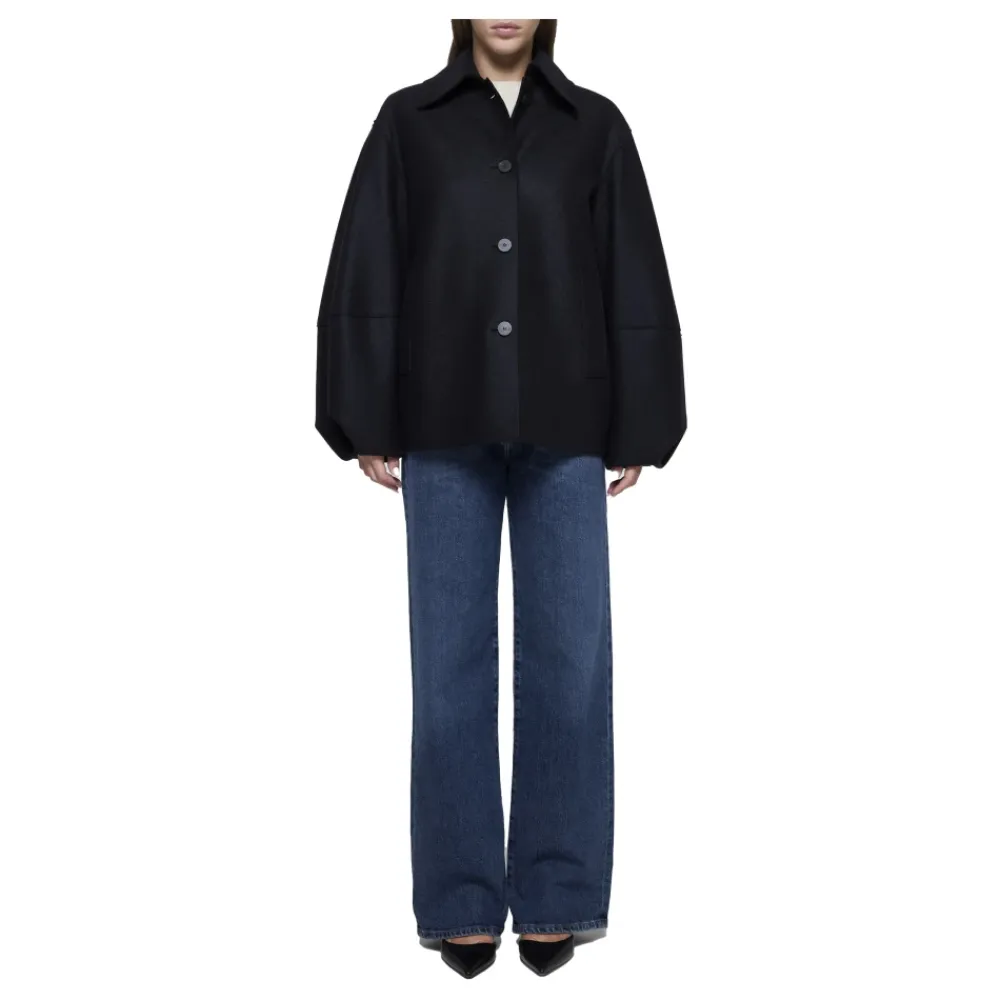 Opgrader din garderobe med denne luksuriøse sorte uldfrakke fra Harris Wharf London. Lavet af 100% ren uld, er denne jakke perfekt til at tilføje et strejf af sofistikation til ethvert outfit.