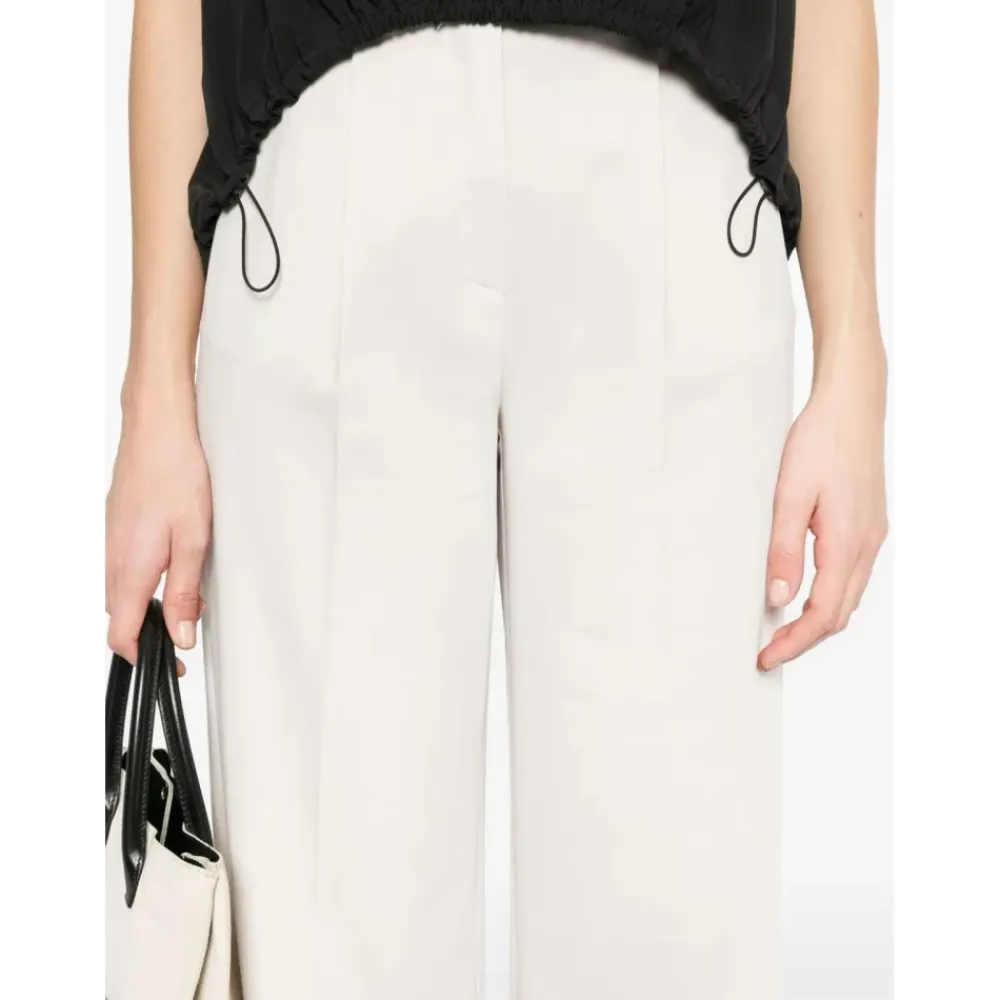 Herno Flawless Vævede Bukser giver en skræddersyet silhuet med høj talje til en bredbenet, beskåret model, der kombinerer polerede proportioner med afslappet bevægelse. Ideelle til arbejde eller elegante fritidsoutfits, de har pressede folder og elegante læg foran for en moderne finish. Vigtige egenskaber: Hvid | Panna | Polyester | Sidelommer | Paspolerede baglommer | Skjult knap- og lynlåslukning | Bæltestropper | Bredbenet, beskåret silhuet | Læg foran | Pressede folder | Pile | Dimensioner og pasform: Almindelig pasform | Høj talje | Beskåret længde | Brede ben | Sammensætning og pleje: Hovedstof: 72% Polyester, 23% Viskose, 5% Elastan | Kant: 55% Bomuld, 45% Polyester | Maskinvask