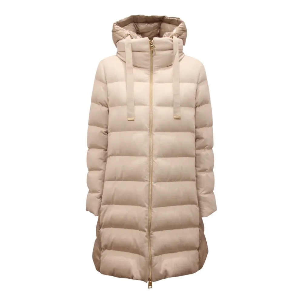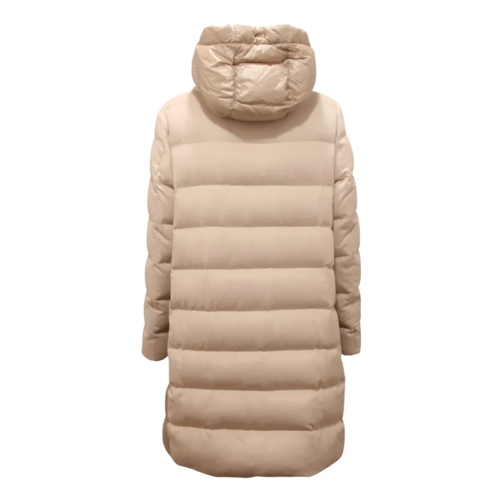 Forkæl dig selv med denne luksuriøse Herno dunfrakke til kvinder, produceret i Italien. Med aftagelig hætte, ydre stof 1: 51% silke 49% kashmir, ydre stof 2: 100% polyamid, polstring: 90% dun 10% fjer. Model: PI001969D 38087 1985 76481-74580-1.